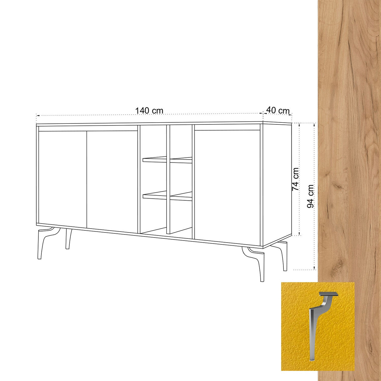 Consola, Mod Design, KAJA, 140x94x40 cm, PAL, Stejar / Galben