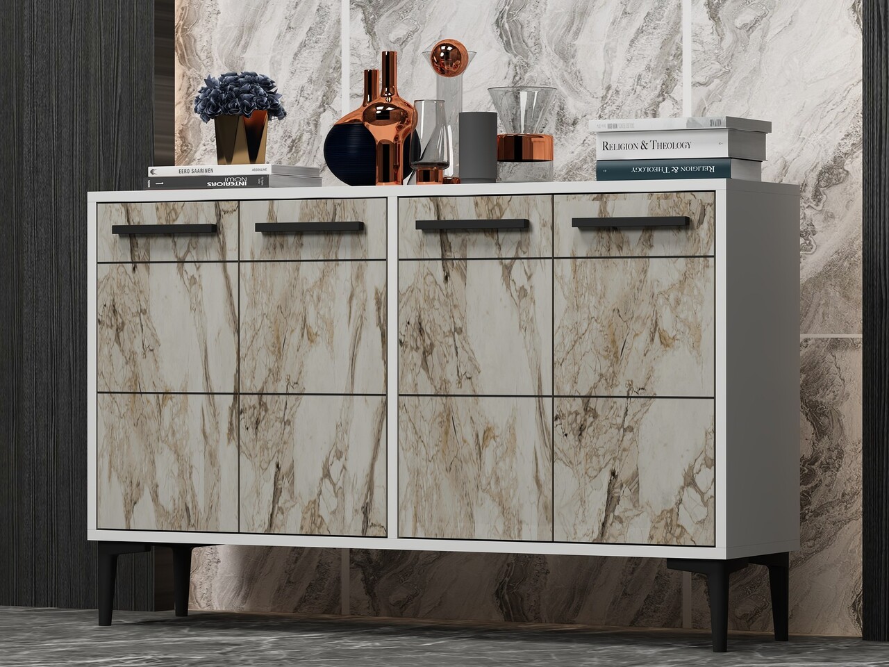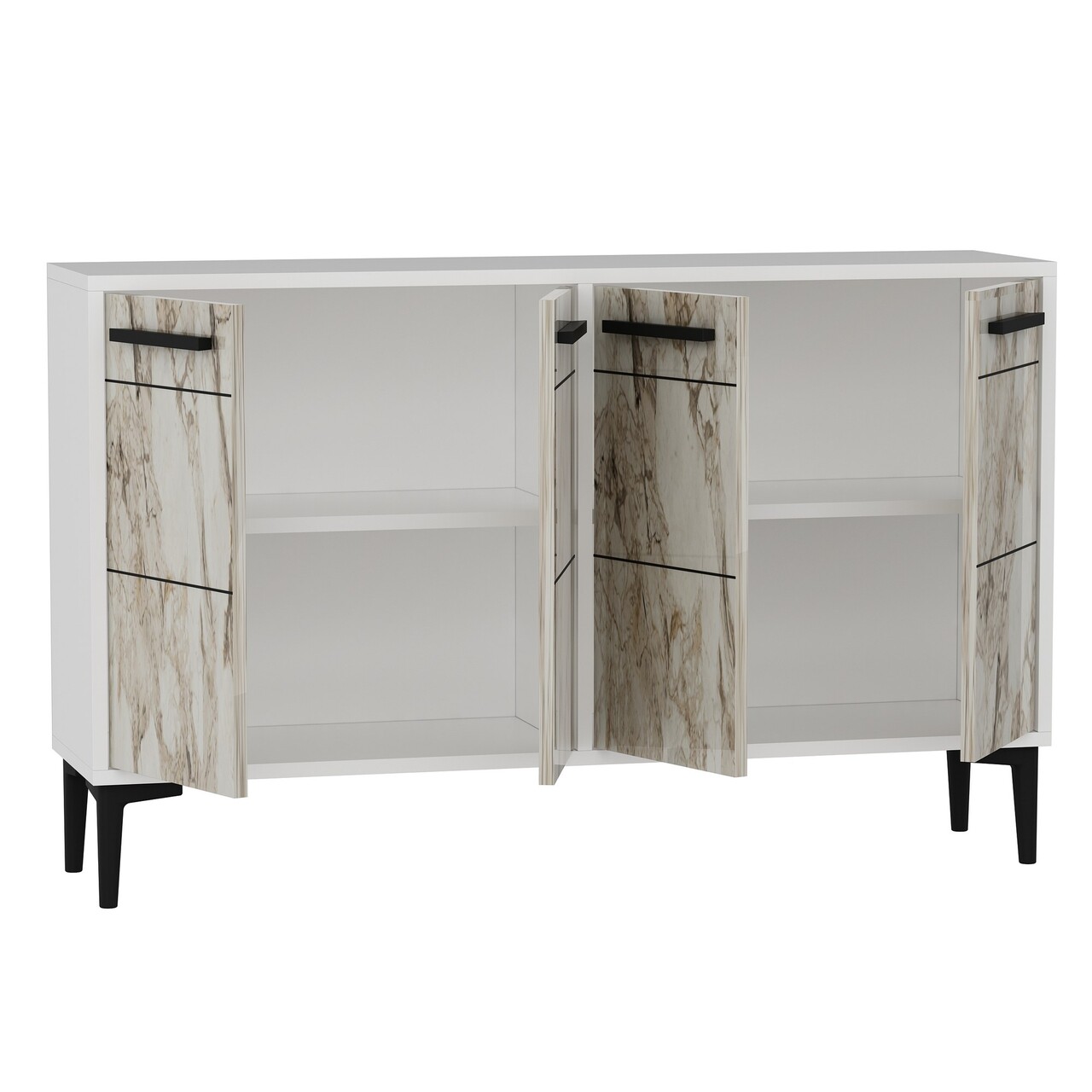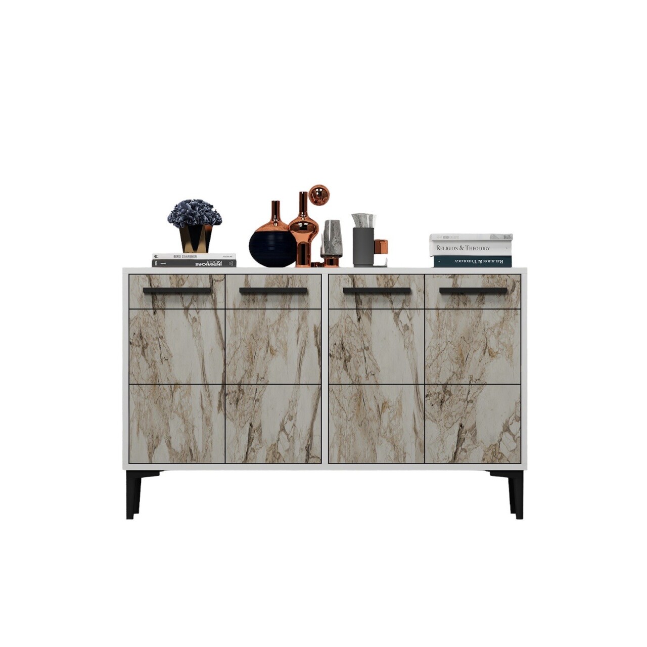 Consola, Odessa, Stria, 120x30x75 cm, PAL, Alb / Marmura