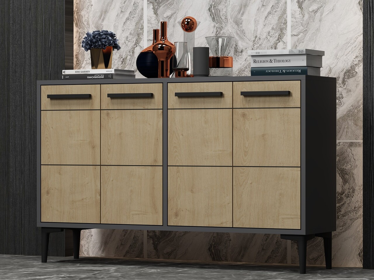 Consola, Odessa, Stria, 120x30x75 cm, PAL, Stejar antracit / safir