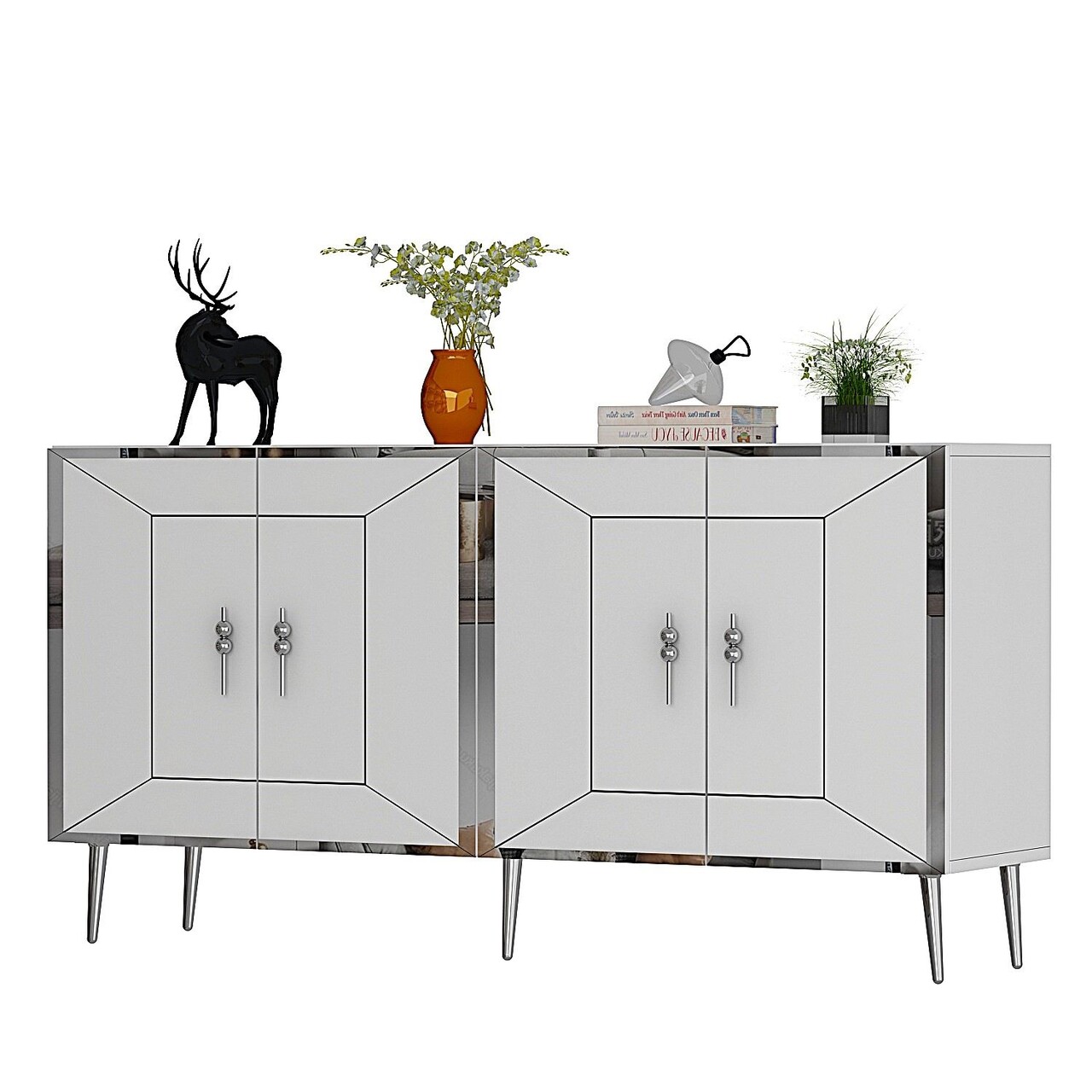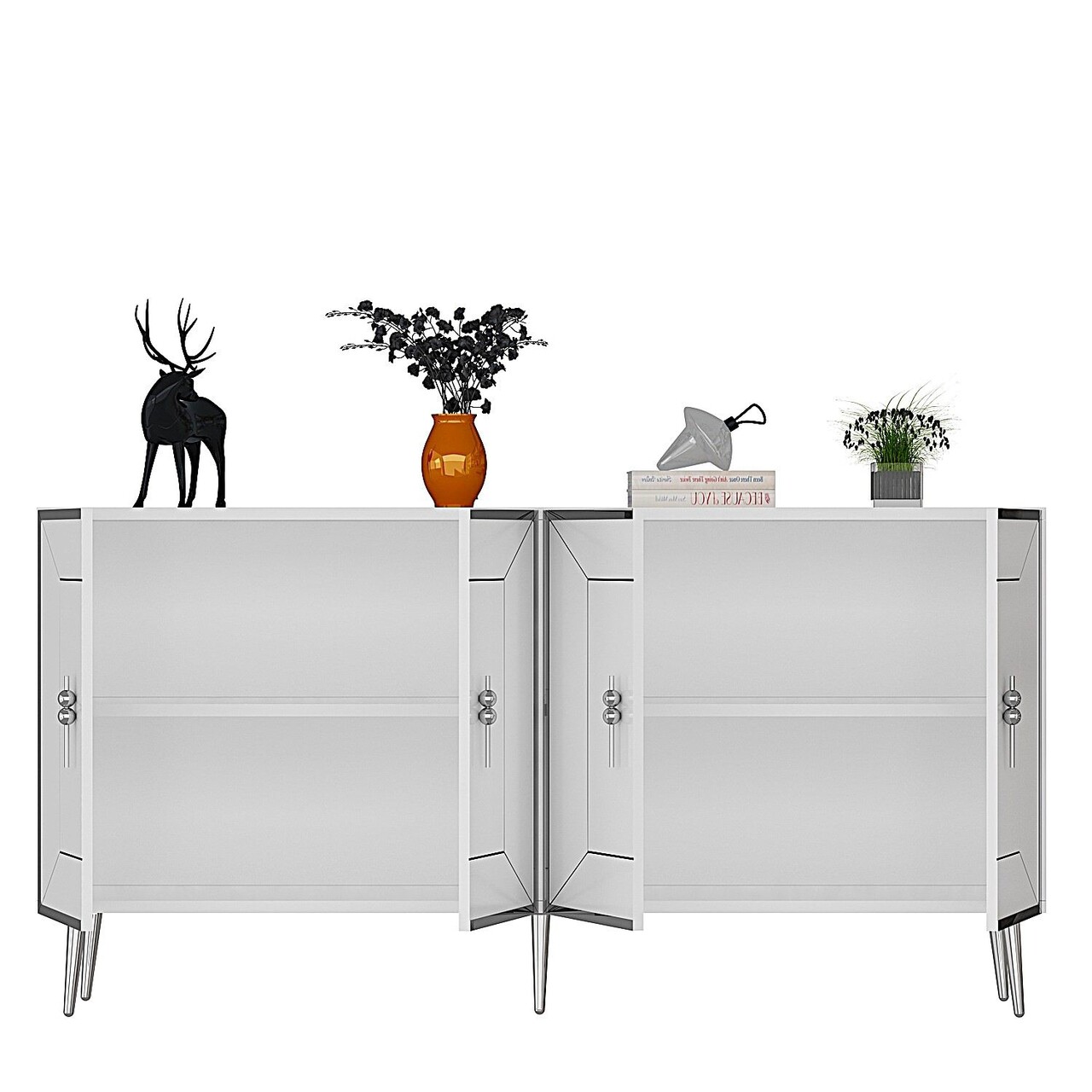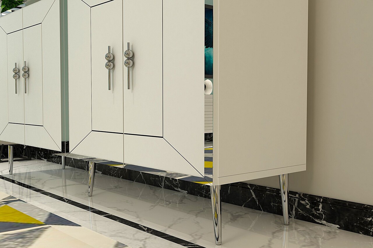 Consola, Olivia, Arno KB150, 150x75x35 cm, PAL, Alb / Argintiu