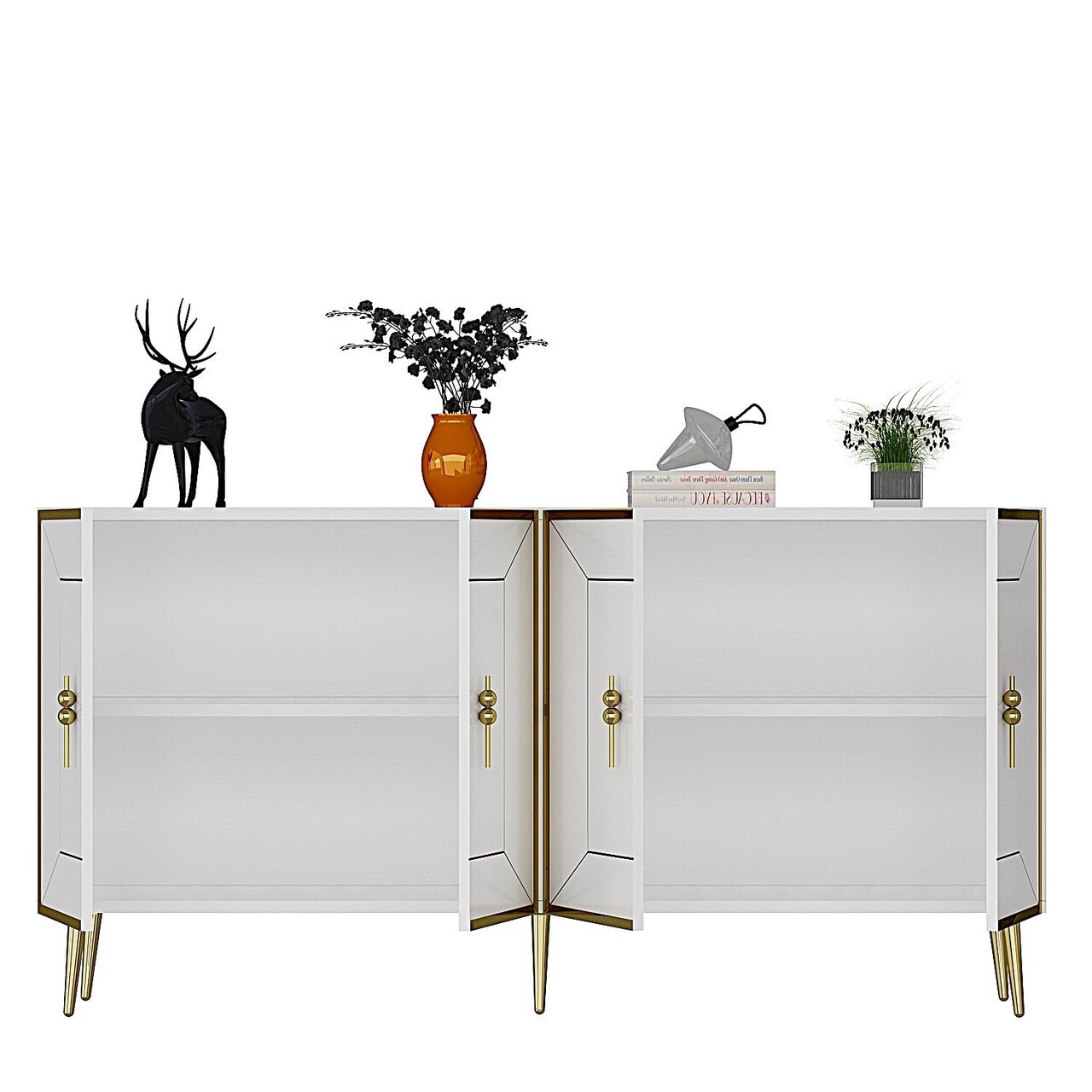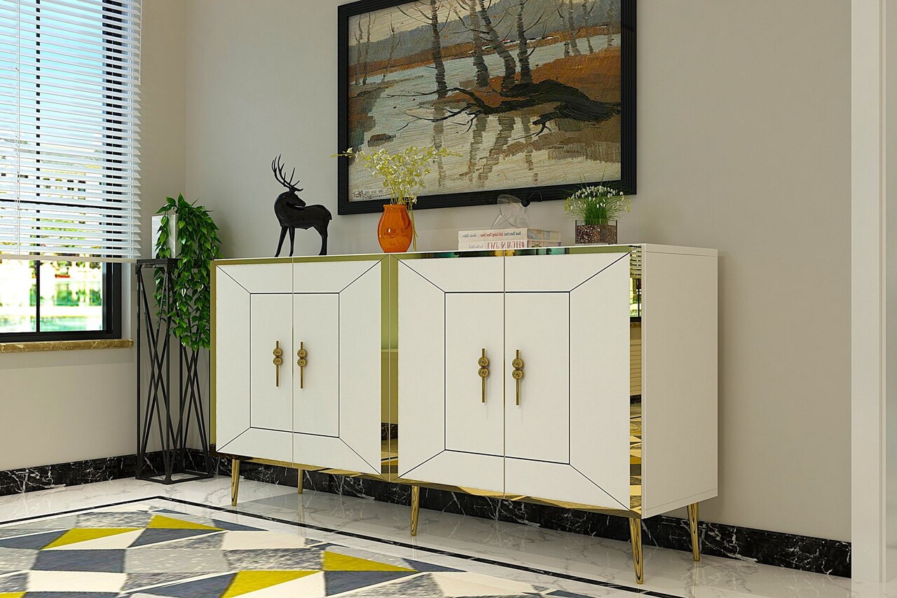 Consola, Olivia, Arno KB150, 150x75x35 cm, PAL, Alb/Auriu
