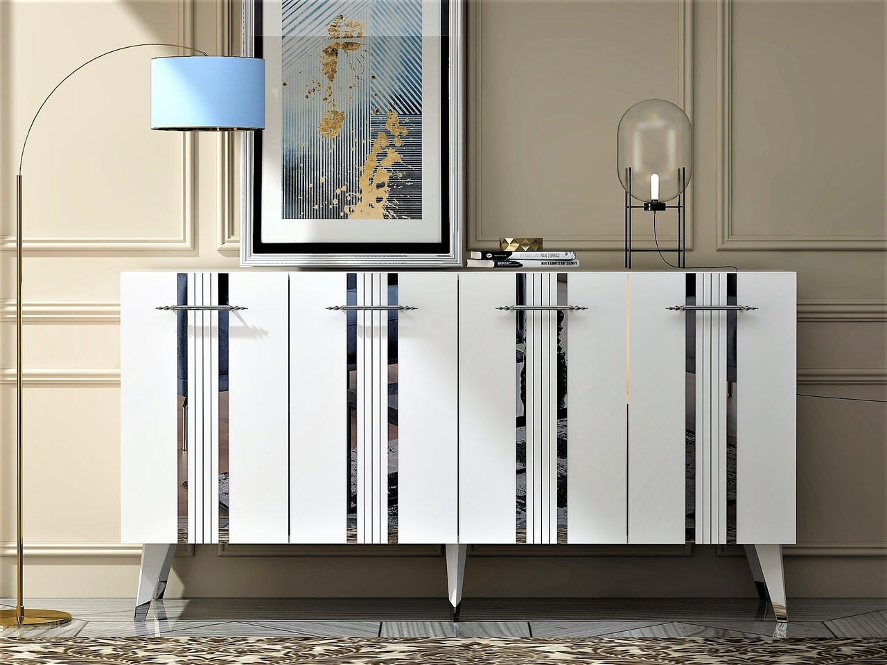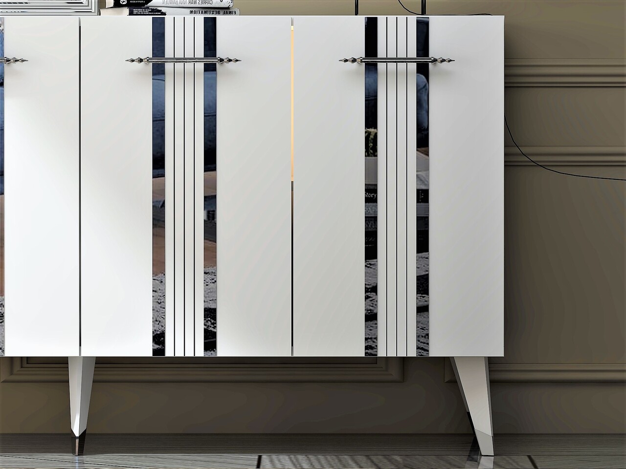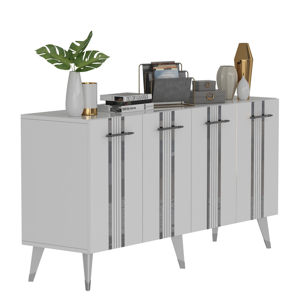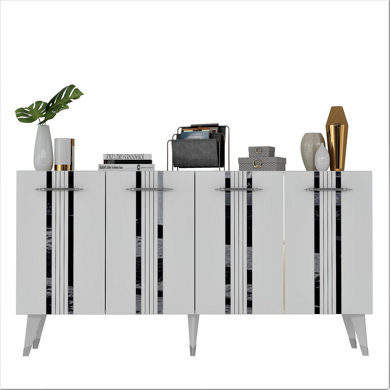 Consola, Olivia, Asel, 150x80x40 cm, PAL , Alb / Argintiu