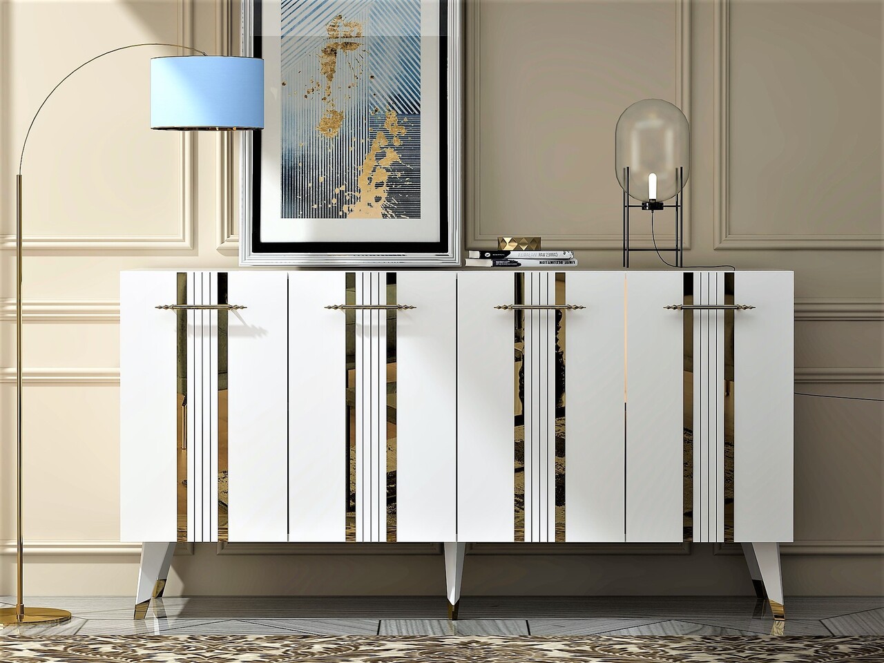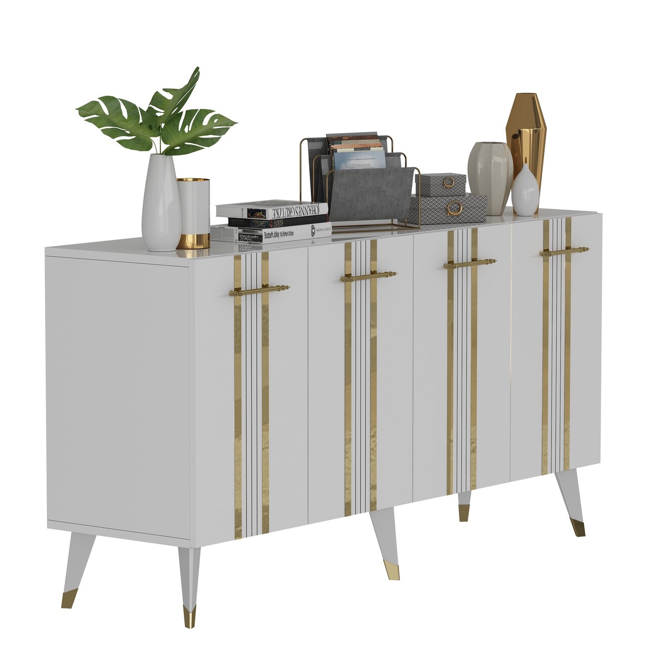 Consola, Olivia, Asel, 150x80x40 cm, PAL , Alb/Auriu