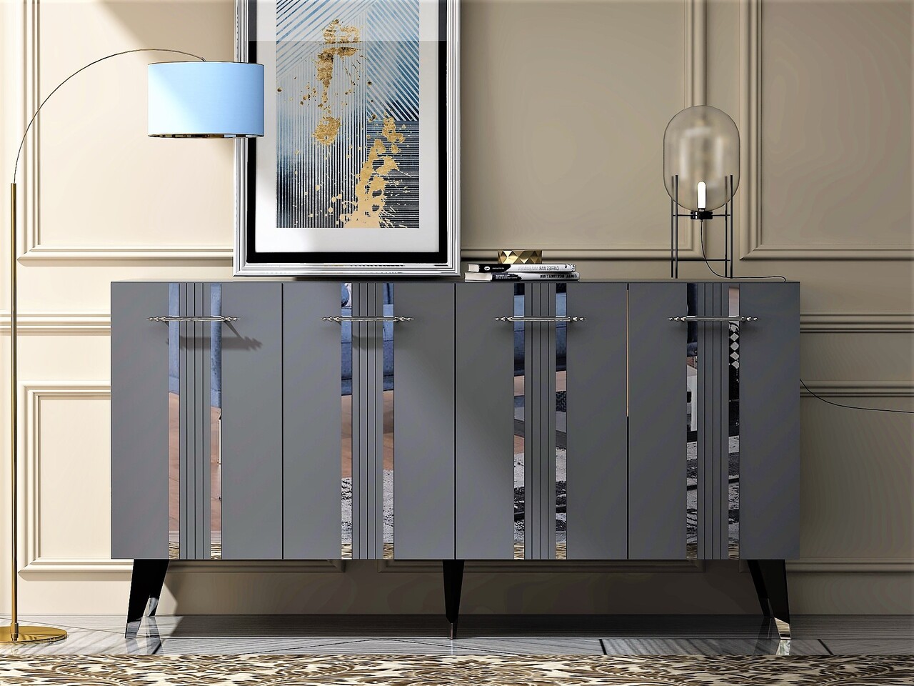 Consola, Olivia, Asel, 150x80x40 cm, PAL , Antracit / Argintiu
