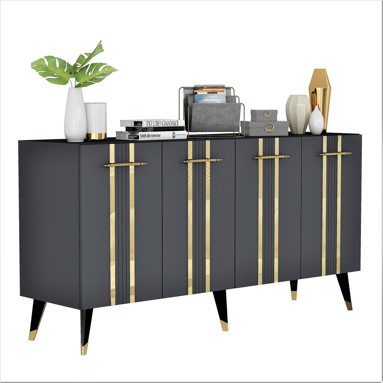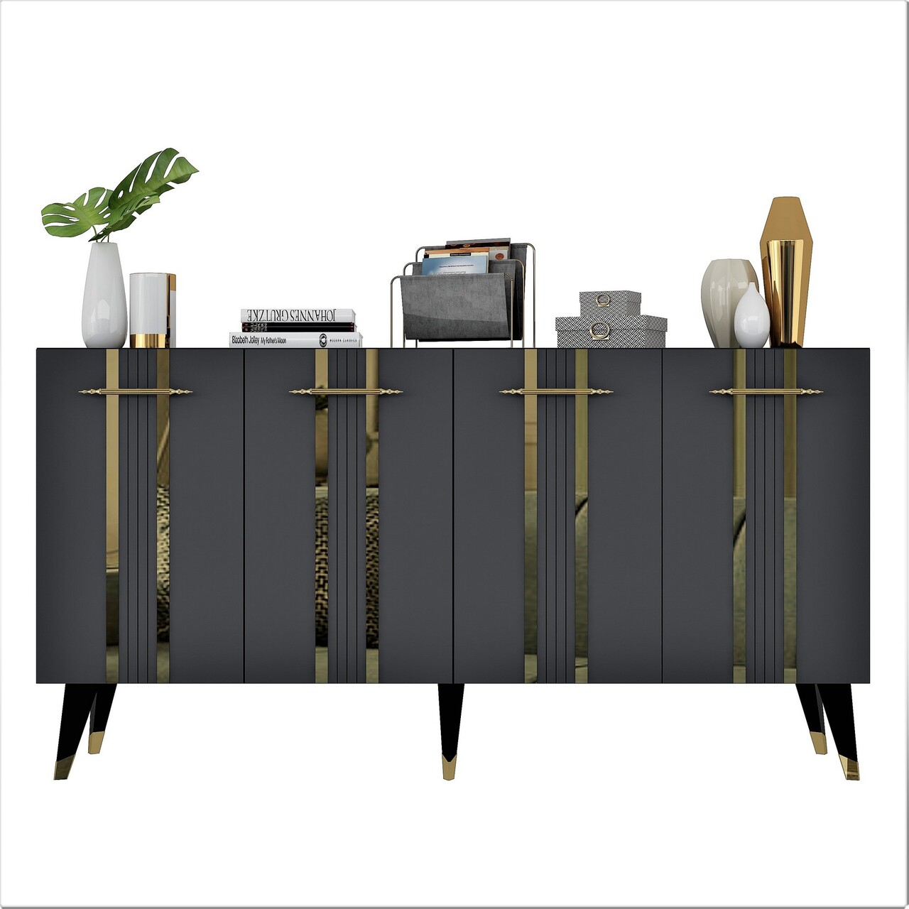 Consola, Olivia, Asel, 150x80x40 cm, PAL , Antracit / Aur