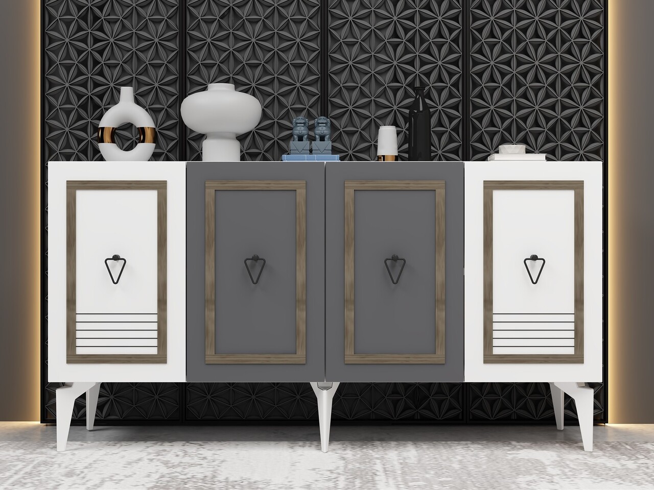 Consola, Olivia, Asya, 150x40x79 cm, PAL , Alb / Antracit / Nuc