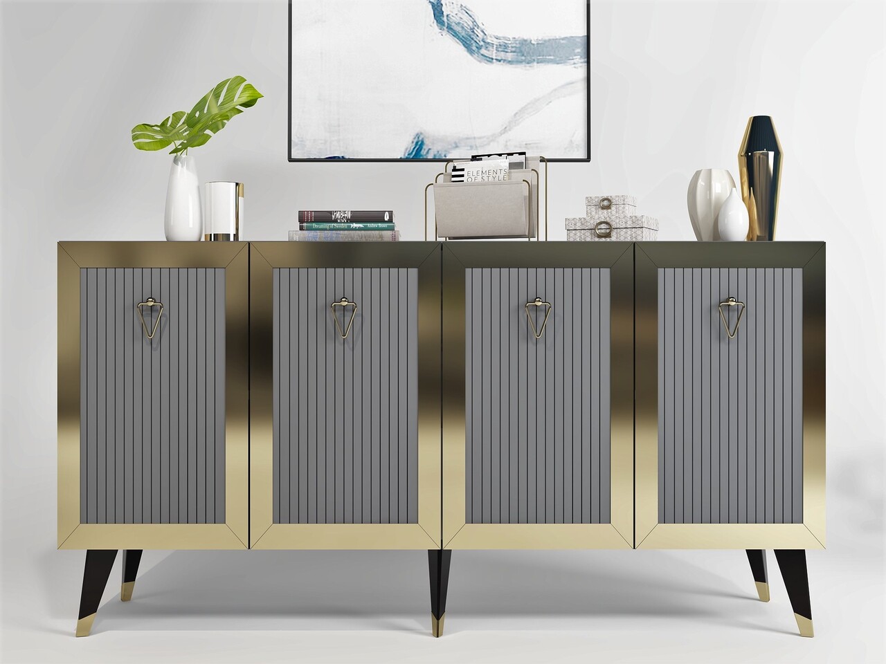 Consola, Olivia, Bare, 150x40x80 cm, PAL , Antracit / Aur