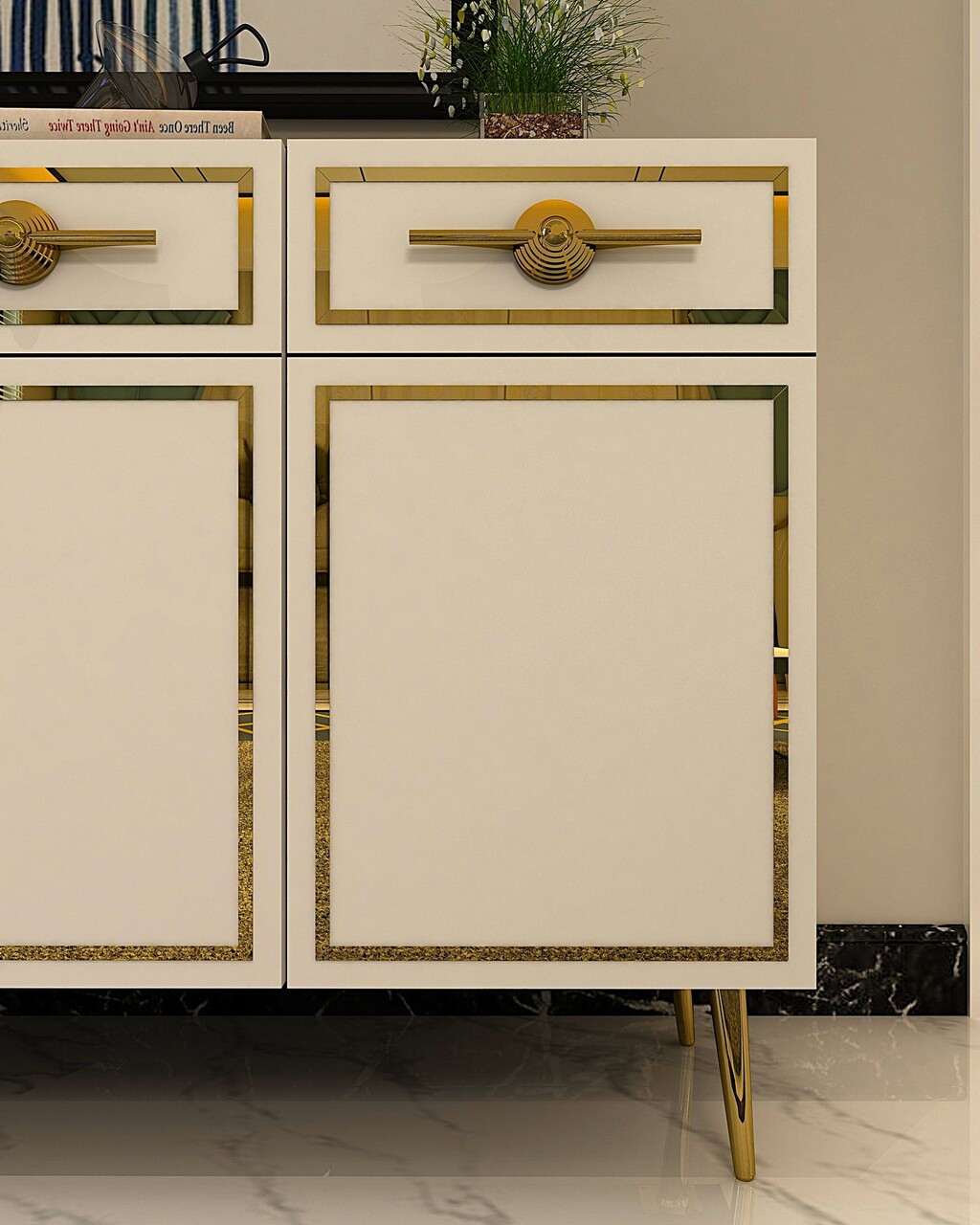 Consola, Olivia, Belly KB150, 150x75x35 cm, PAL , Alb/Auriu