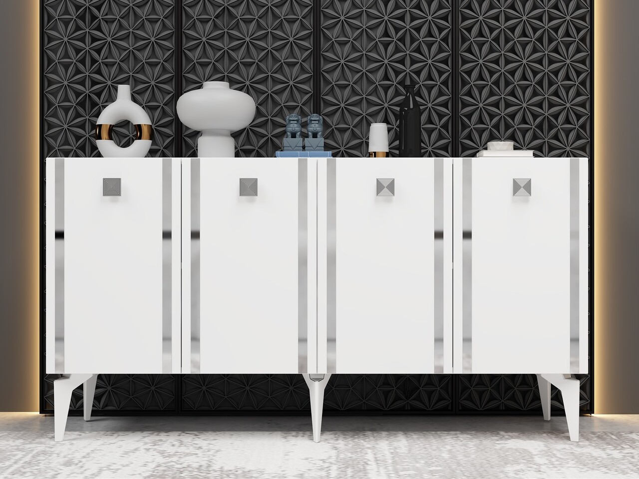 Consola, Olivia, Doruk, 150x79x40 cm, PAL , Alb / Argintiu