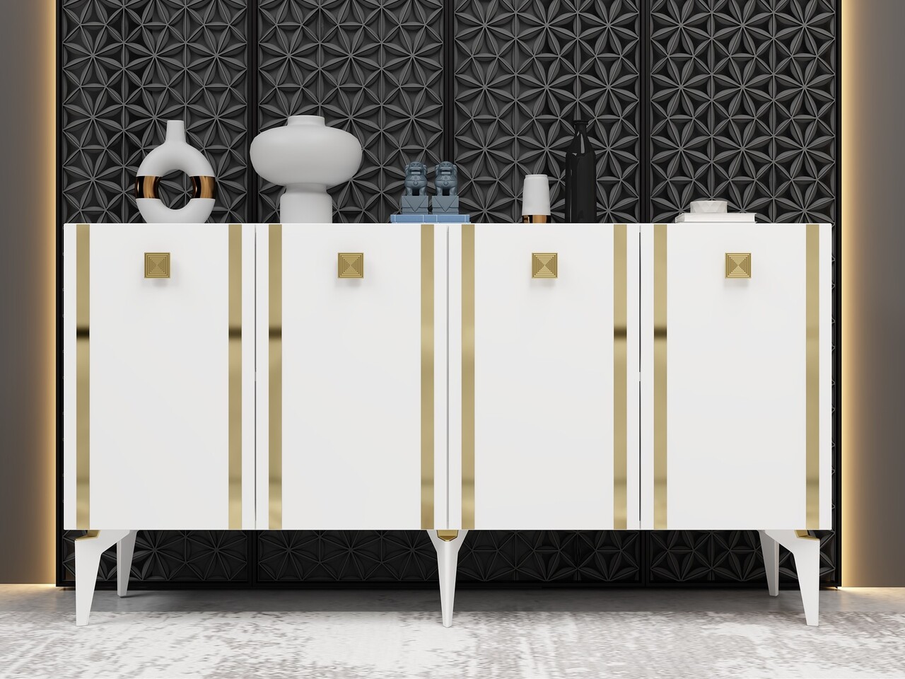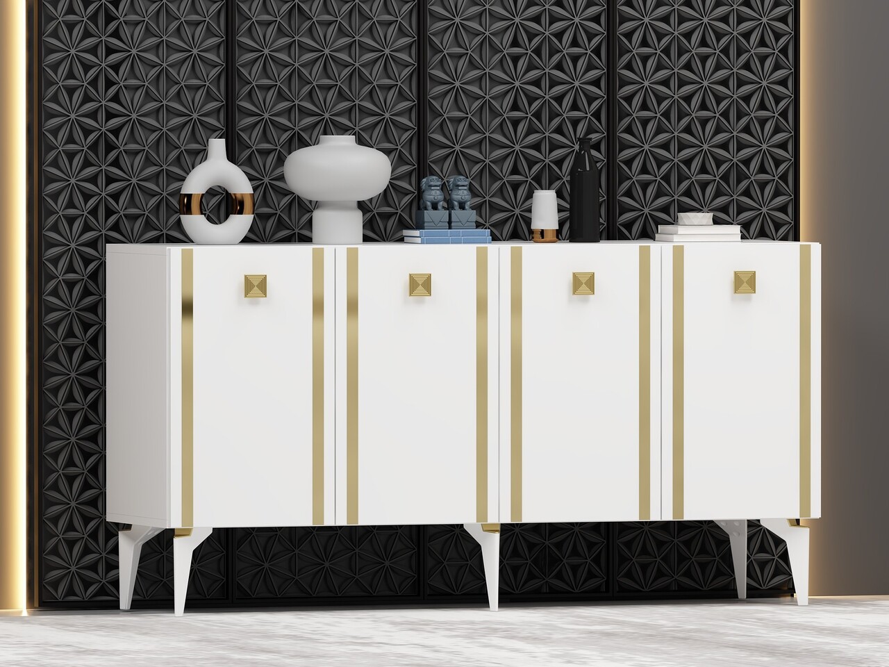 Consola, Olivia, Doruk, 150x79x40 cm, PAL , Alb/Auriu
