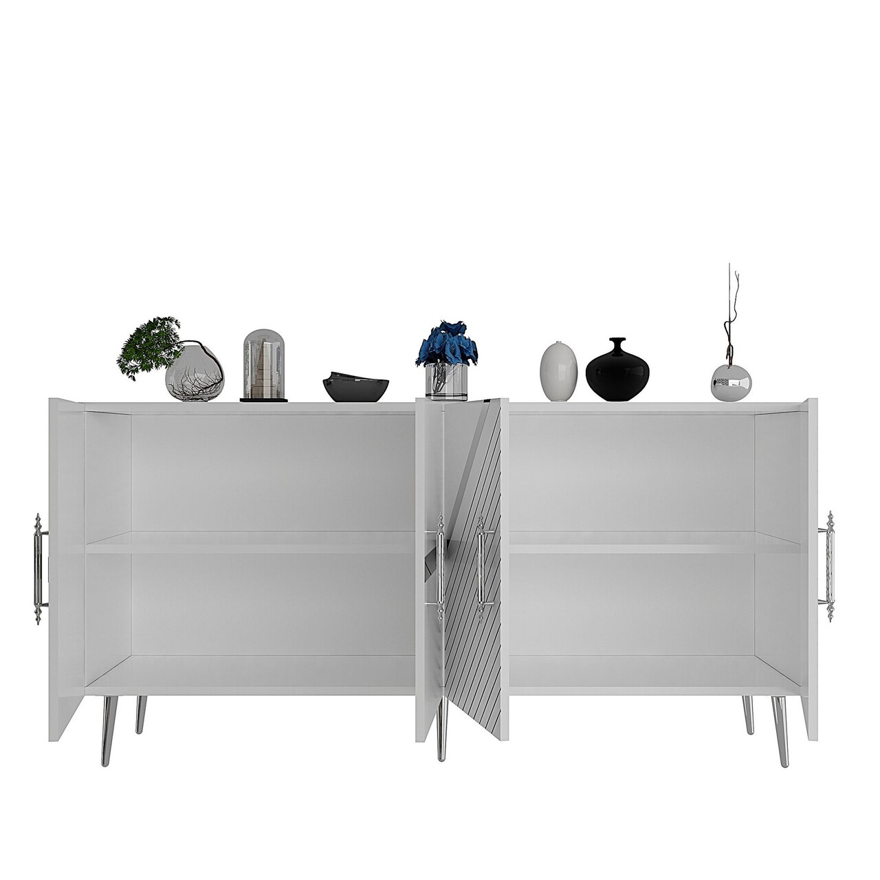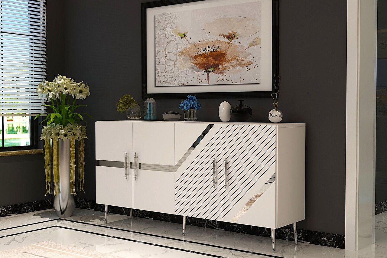 Consola, Olivia, Fuga KB150, 150x75x35 cm, PAL, Alb / Argintiu