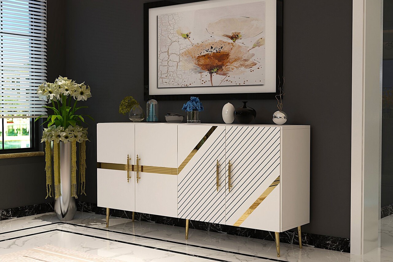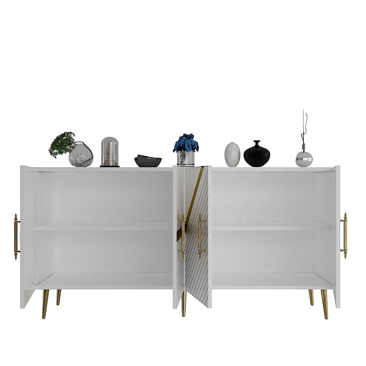 Consola, Olivia, Fuga KB150, 150x75x35 cm, PAL, Alb/Auriu