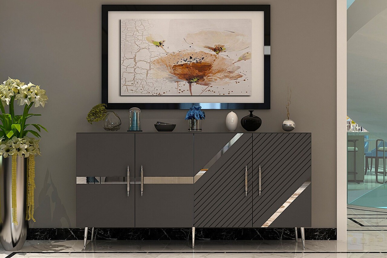 Consola, Olivia, Fuga KB150, 150x75x35 cm, PAL, Antracit / Argintiu