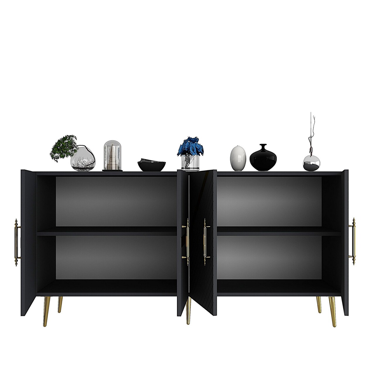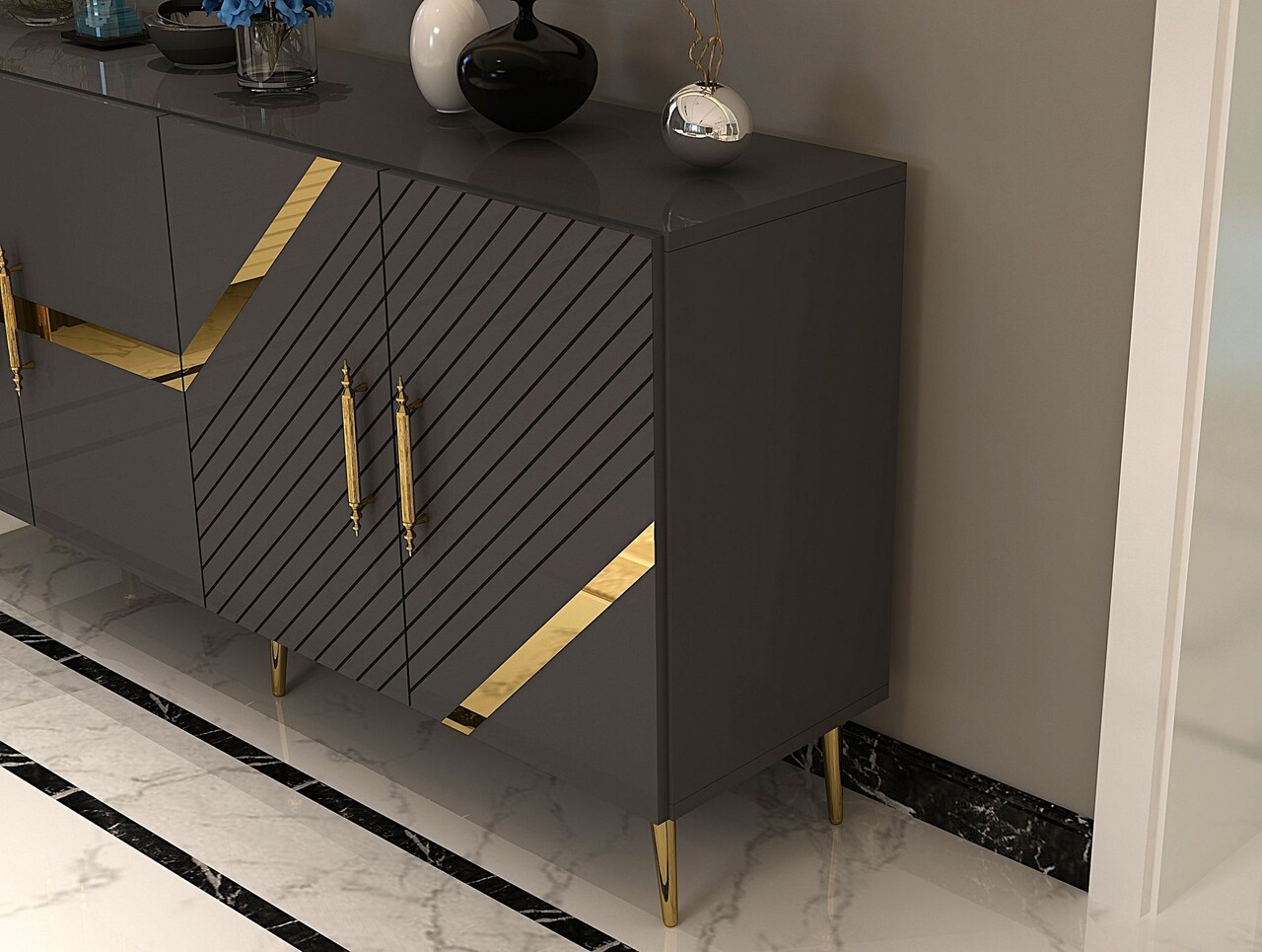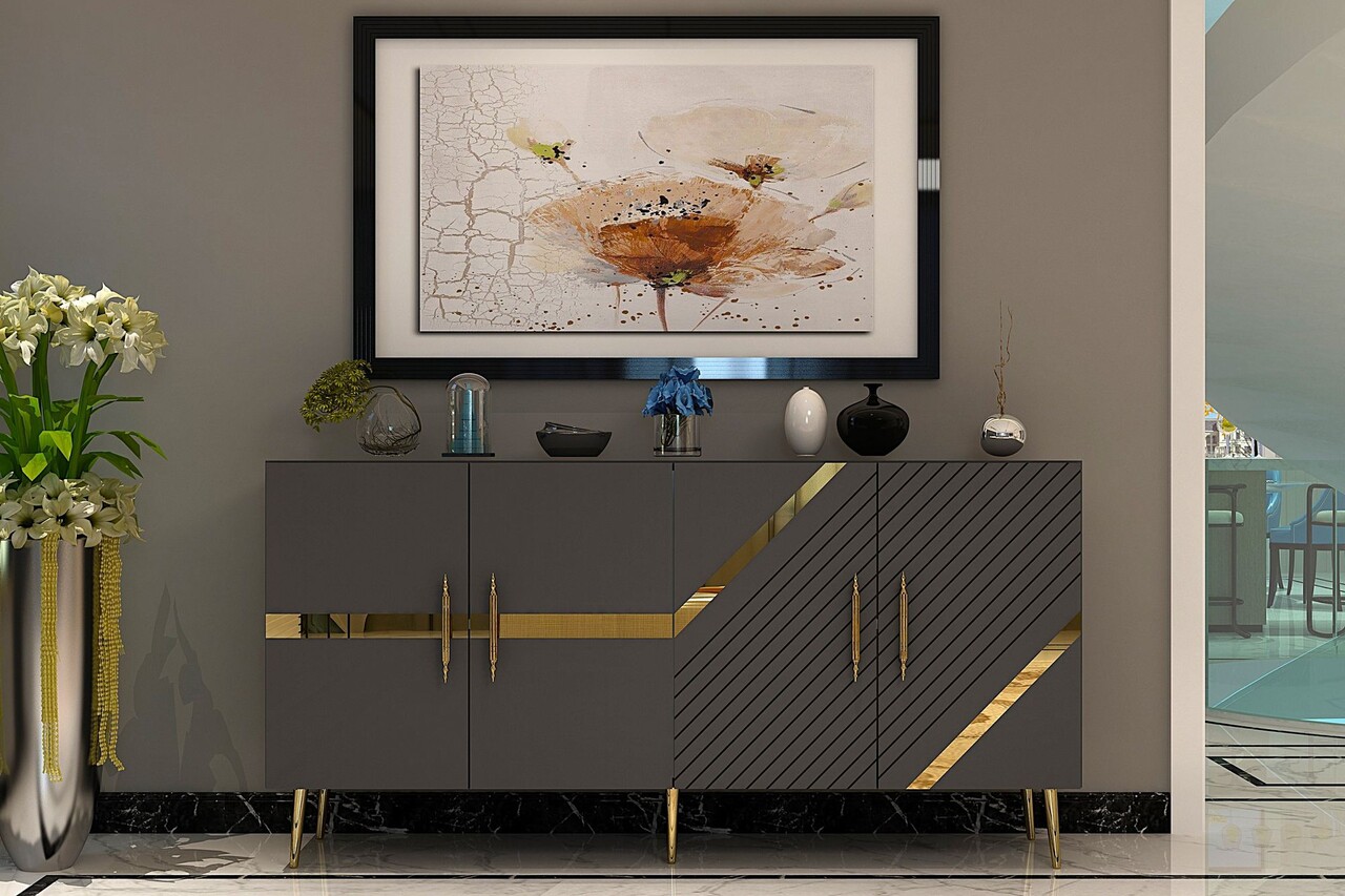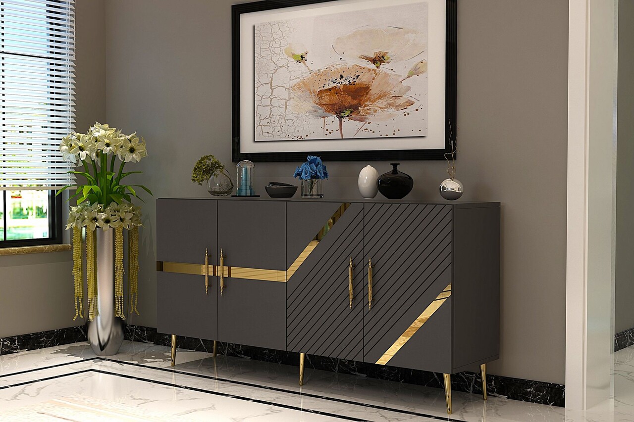 Consola, Olivia, Fuga KB150, 150x75x35 cm, PAL, Antracit / Aur