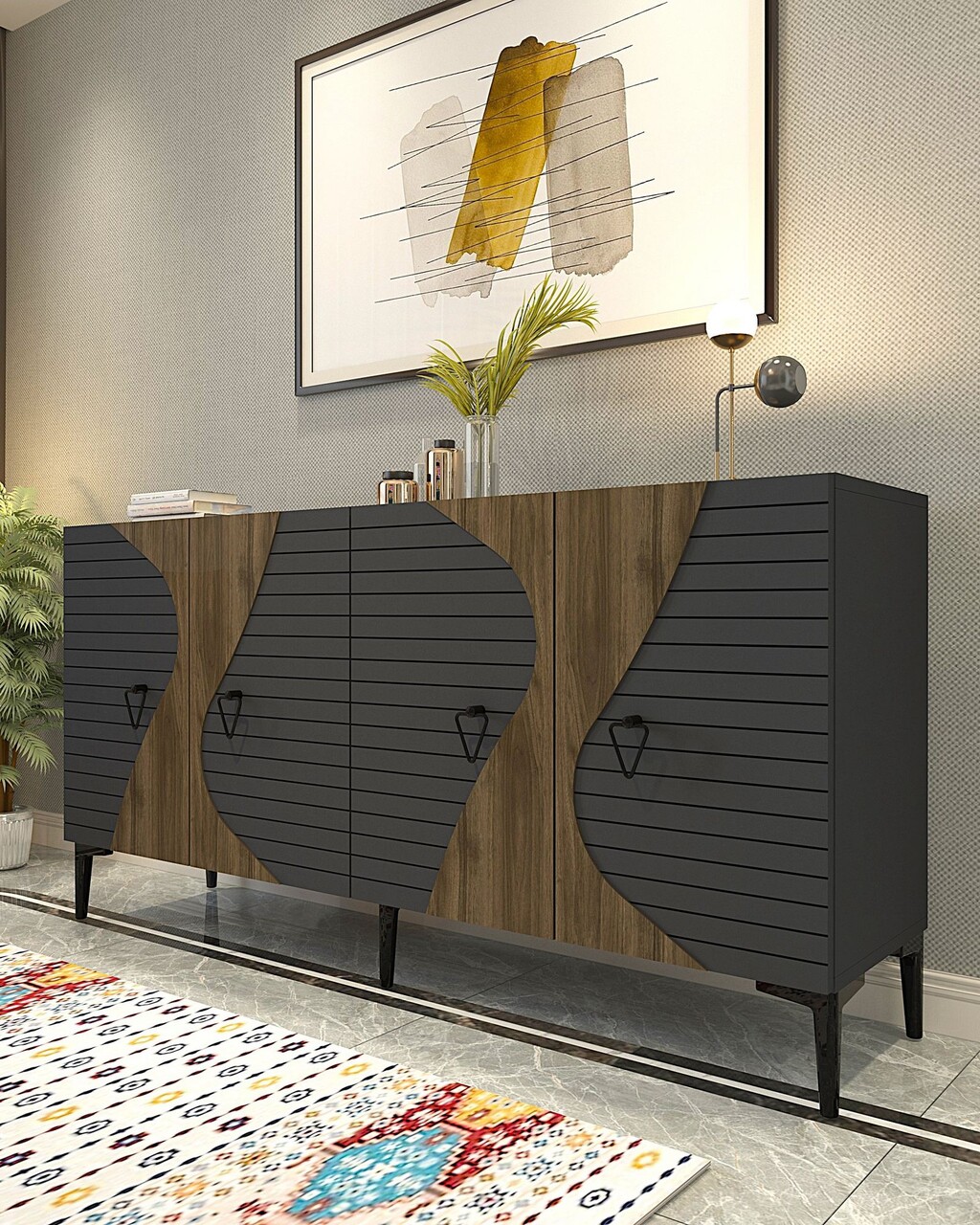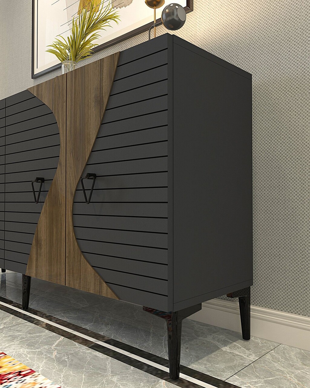 Consola, Olivia, Genus KB150, 150x75x35 cm, PAL , Antracit / Nuc