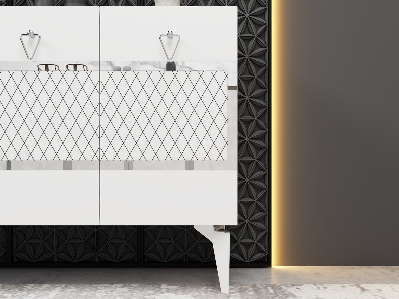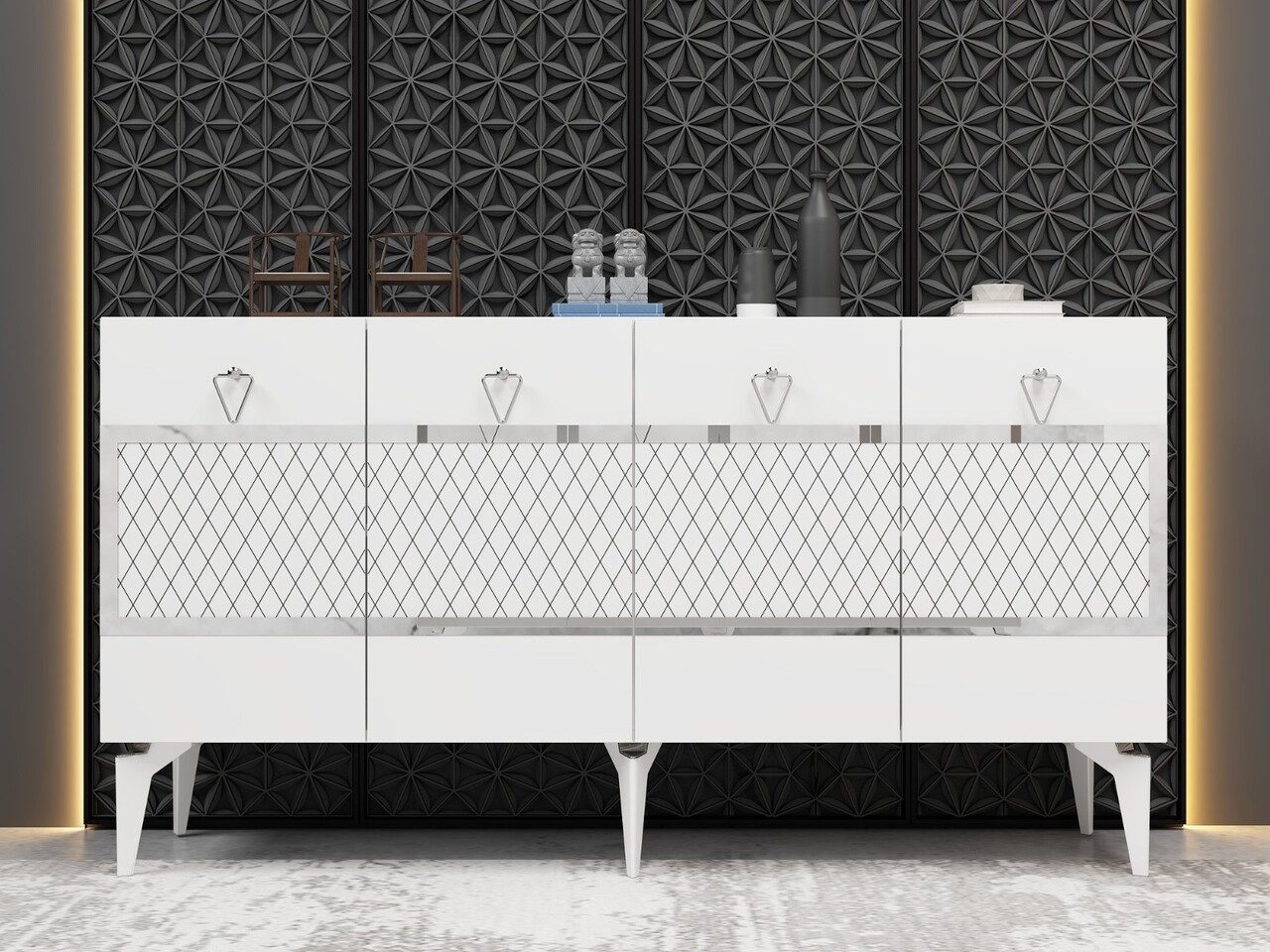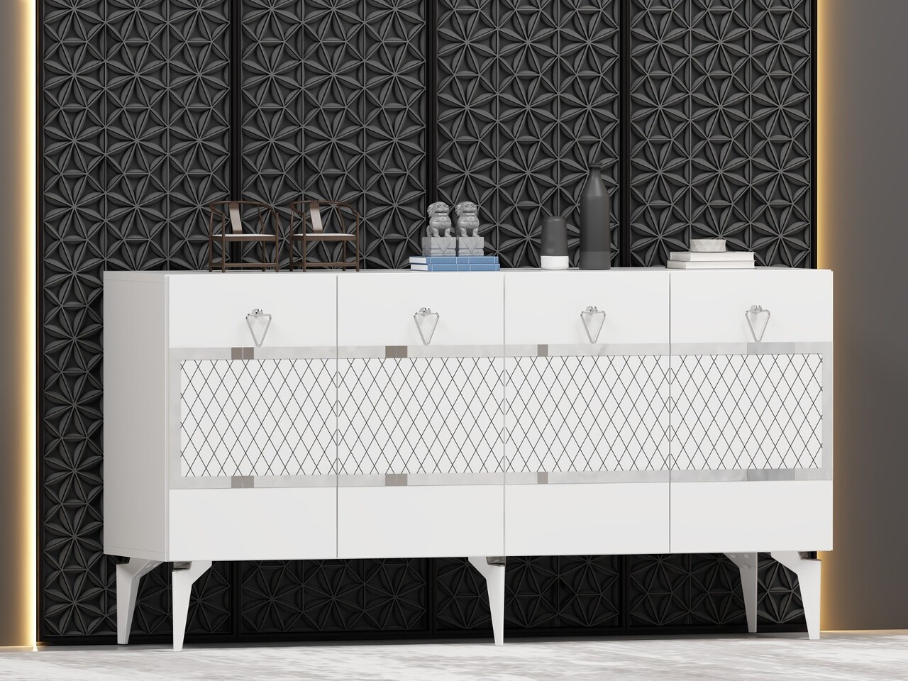 Consola, Olivia, Ipek, 150x79x40 cm, PAL , Alb / Argintiu