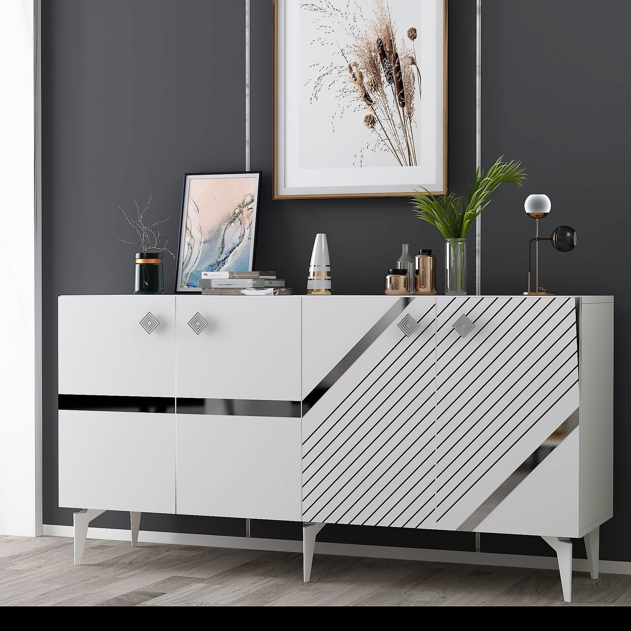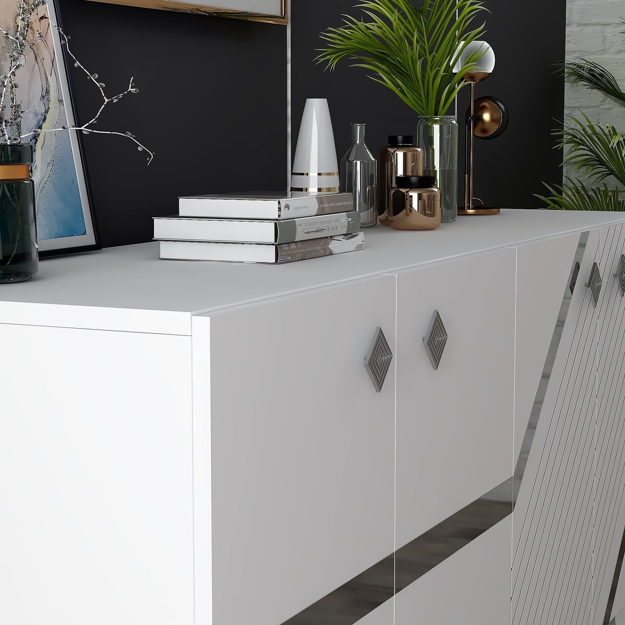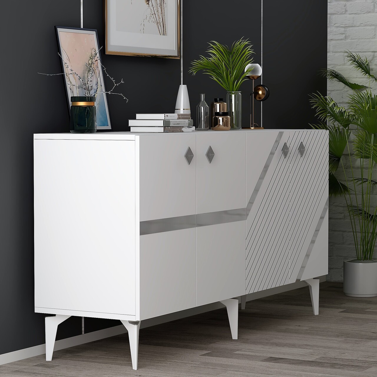 Consola, Olivia, Iris, 150x40x79 cm, PAL , Alb / Argintiu