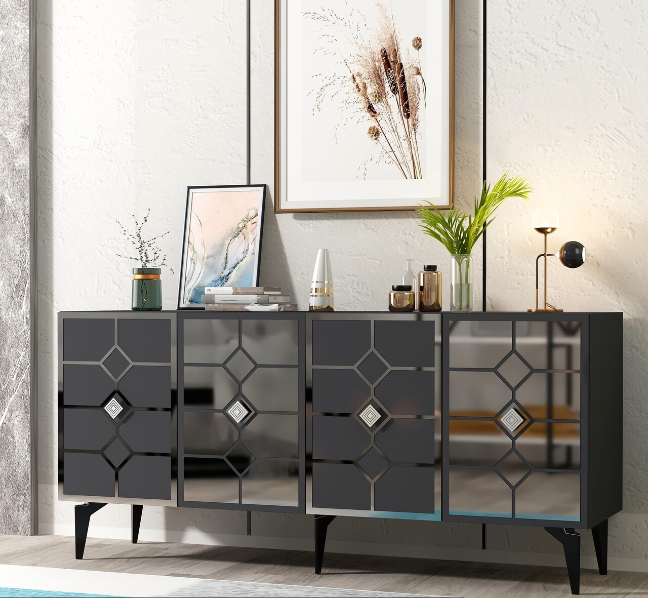 Consola, Olivia, Irmak, 150x40x79 cm, PAL , Antracit / Argintiu