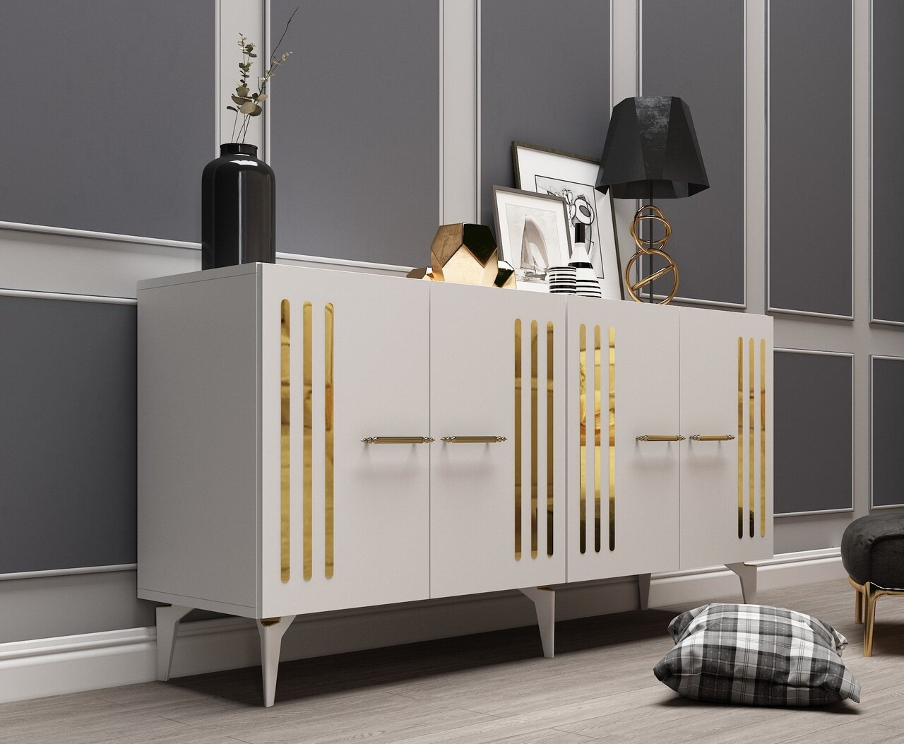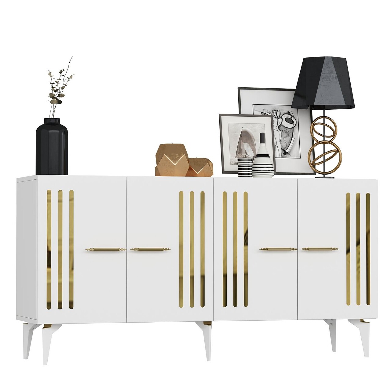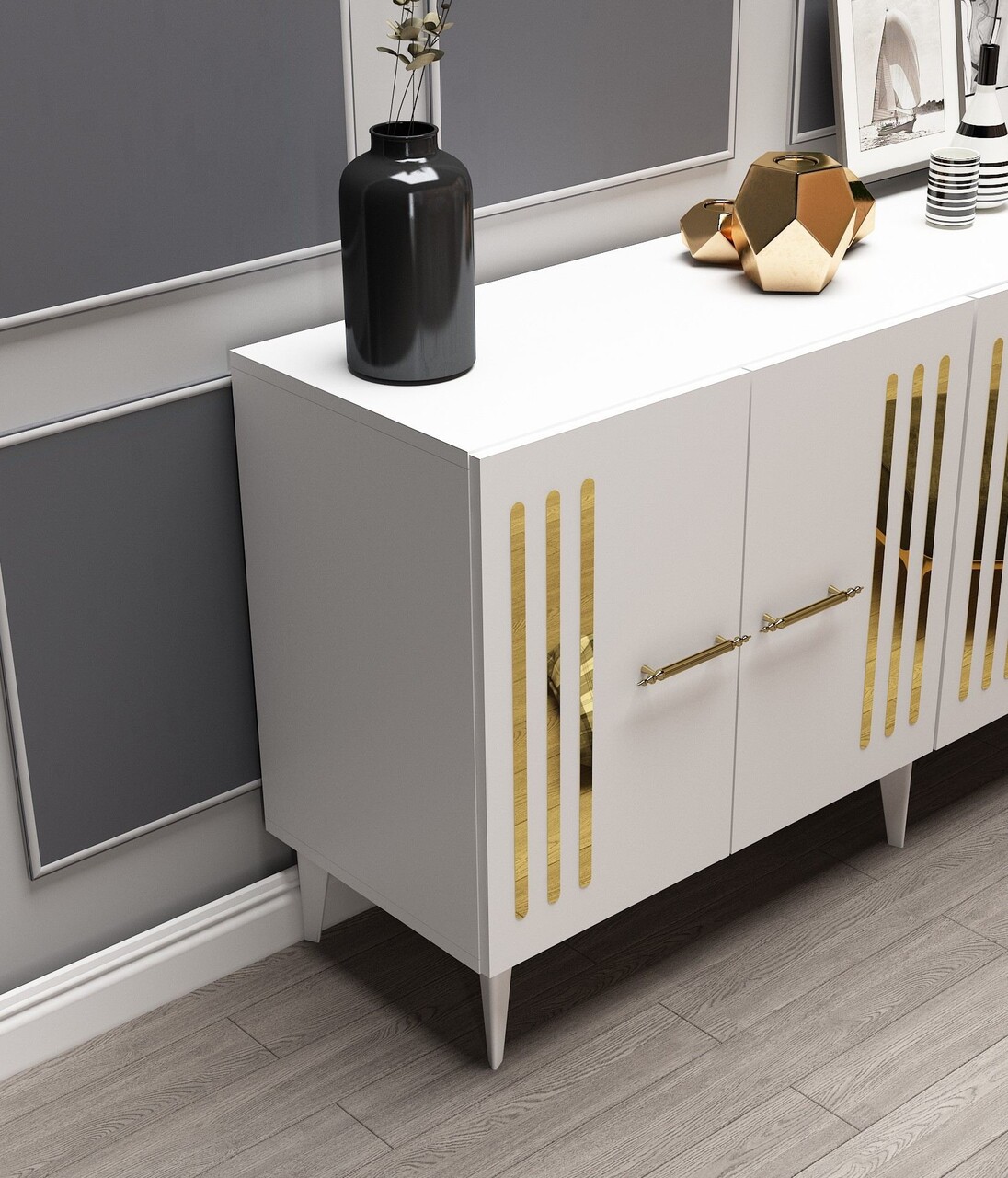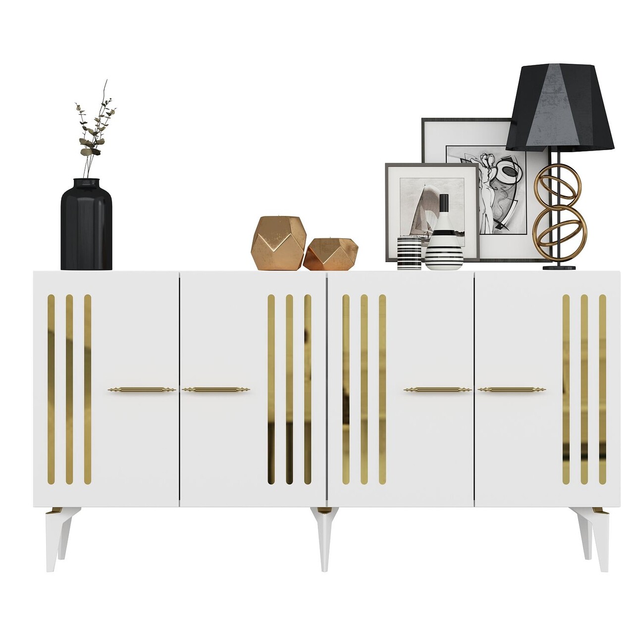 Consola, Olivia, Junes, 150x79x40 cm, PAL , Alb/Auriu