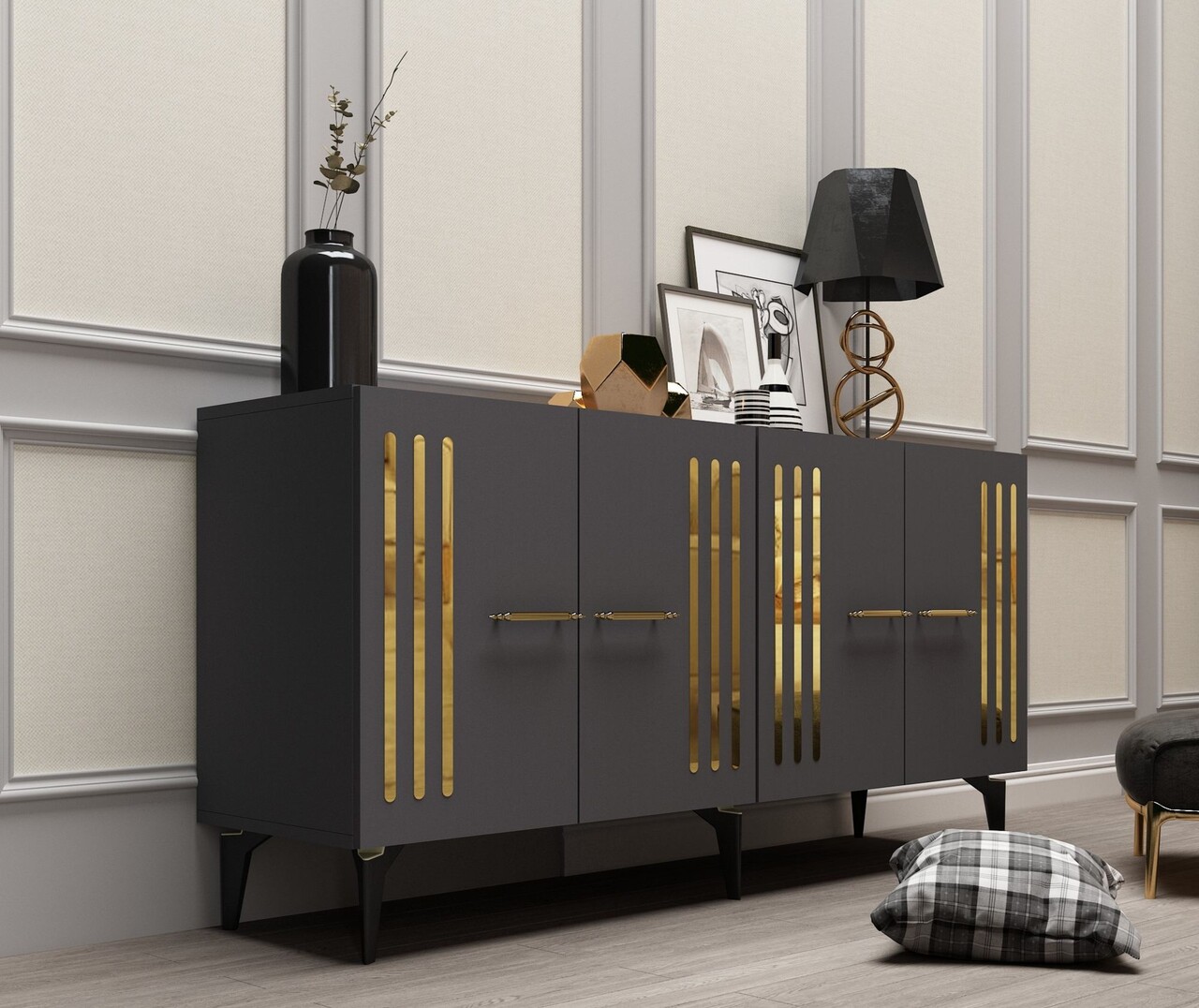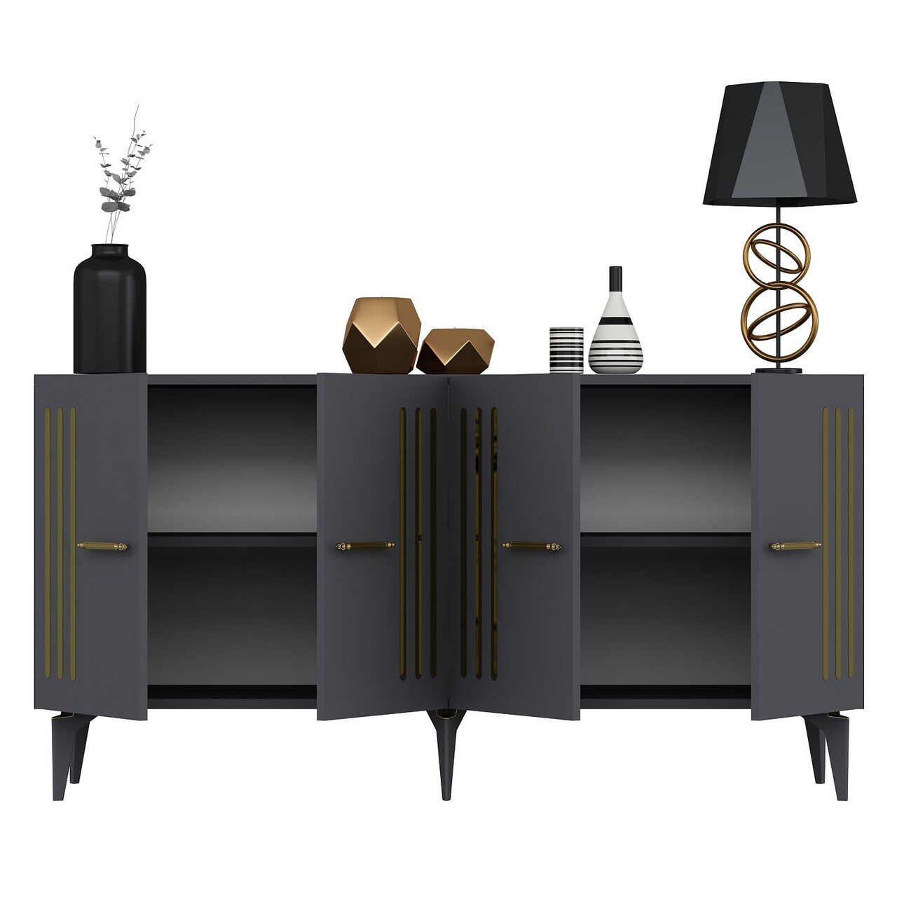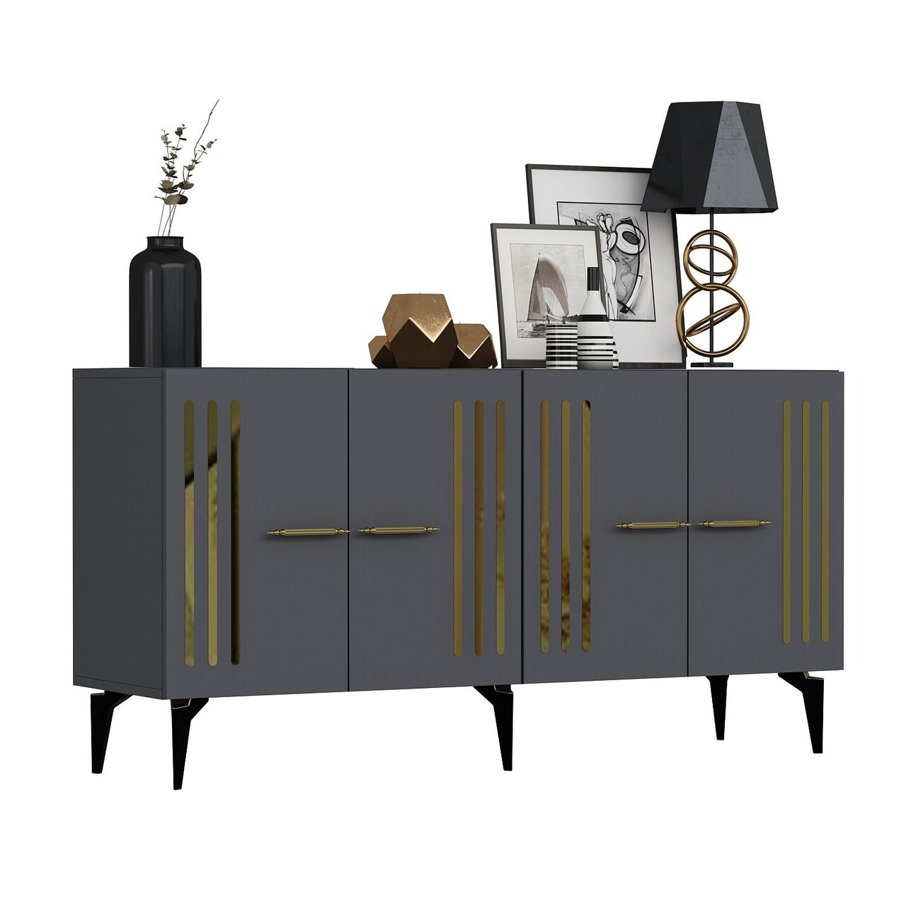 Consola, Olivia, Junes, 150x79x40 cm, PAL , Antracit / Aur