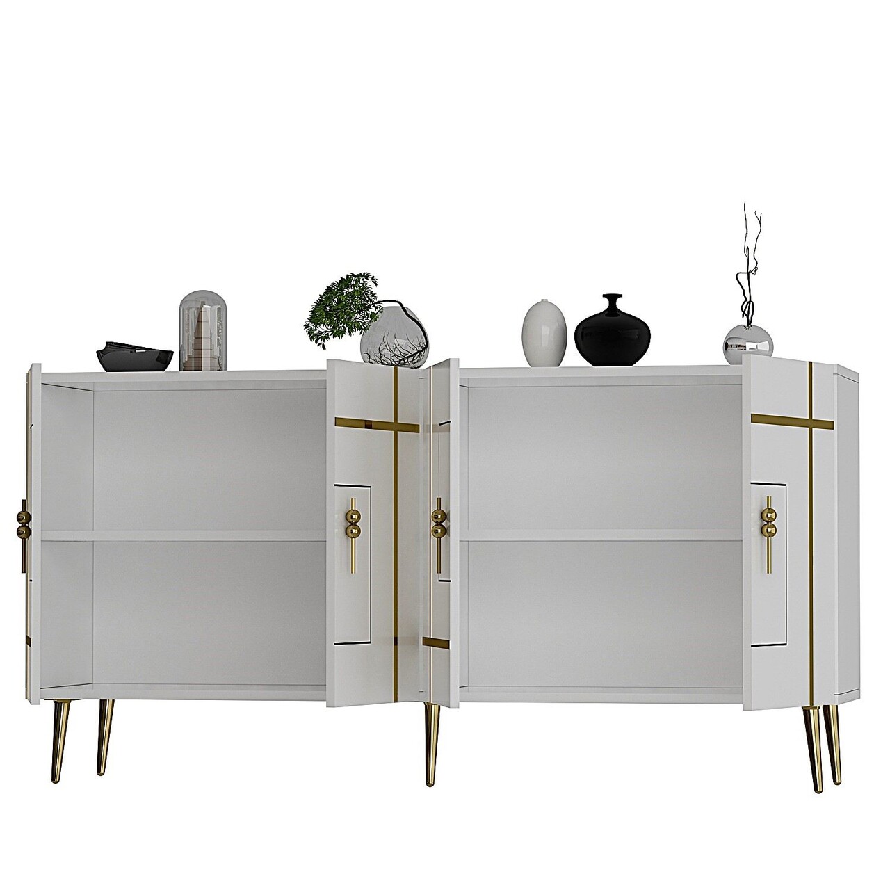 Consola, Olivia, Line KB150, 150x75x35 cm, PAL, Alb/Auriu