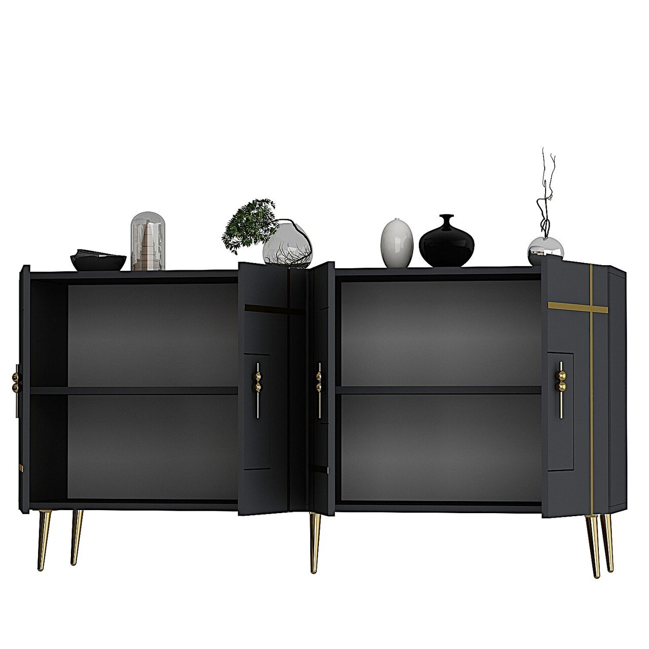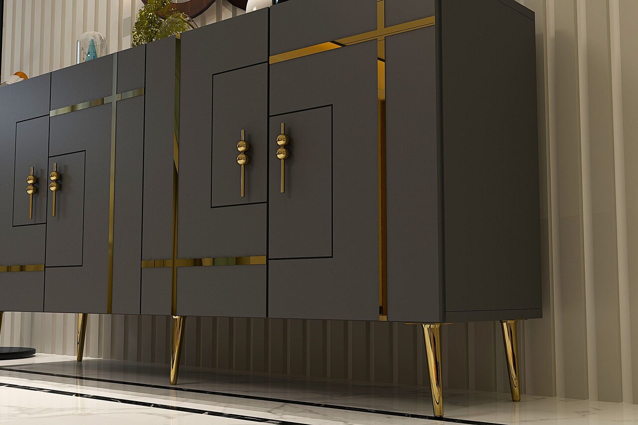 Consola, Olivia, Line KB150, 150x75x35 cm, PAL, Antracit / Aur