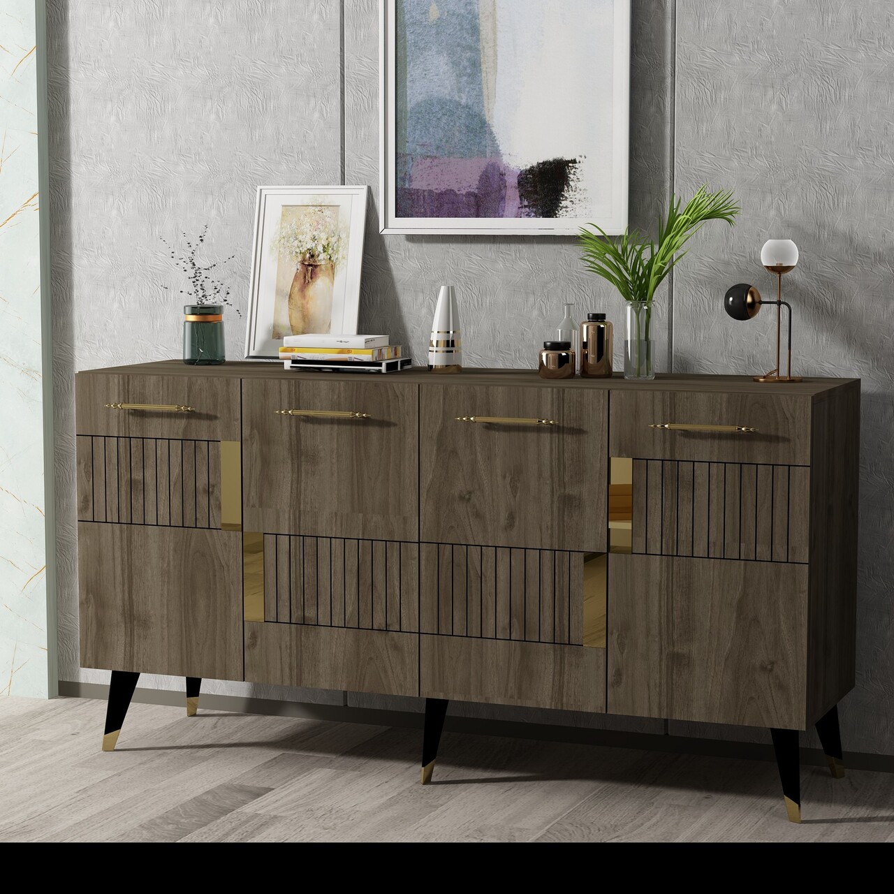 Consola, Olivia, Moda, 150x79x40 cm, PAL , Nuc / Aur