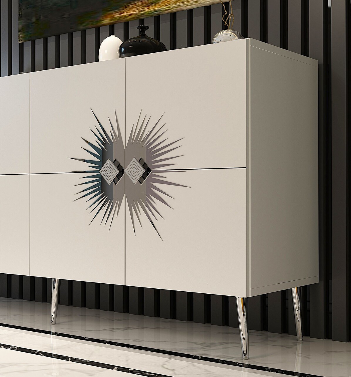 Consola, Olivia, Nida KB150, 150x75x35 cm, PAL, Alb / Argintiu