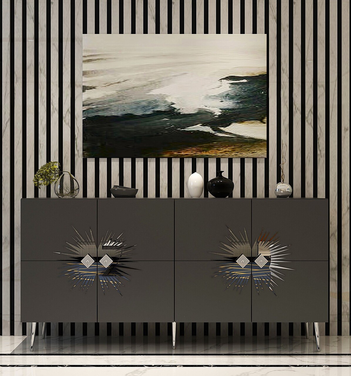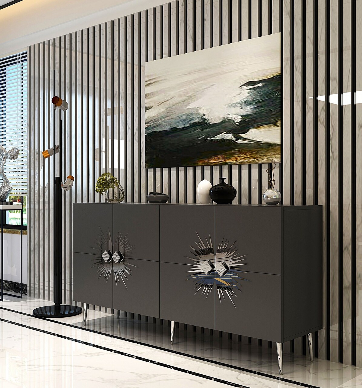 Consola, Olivia, Nida KB150, 150x75x35 cm, PAL, Antracit / Argintiu