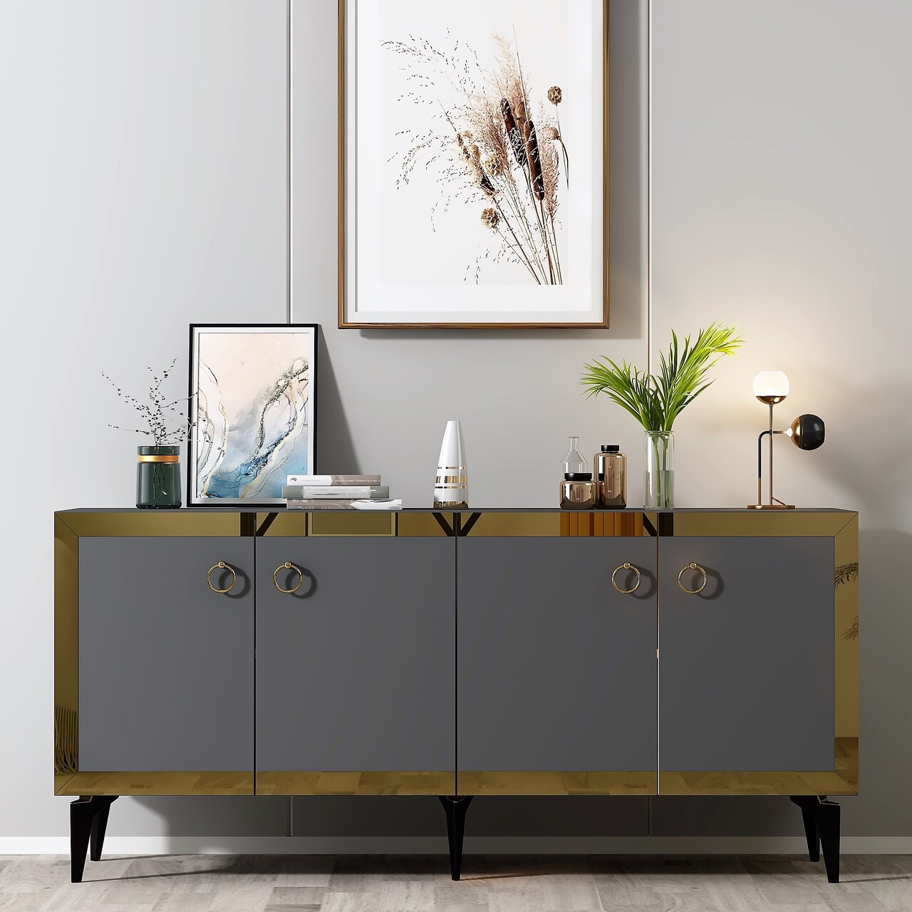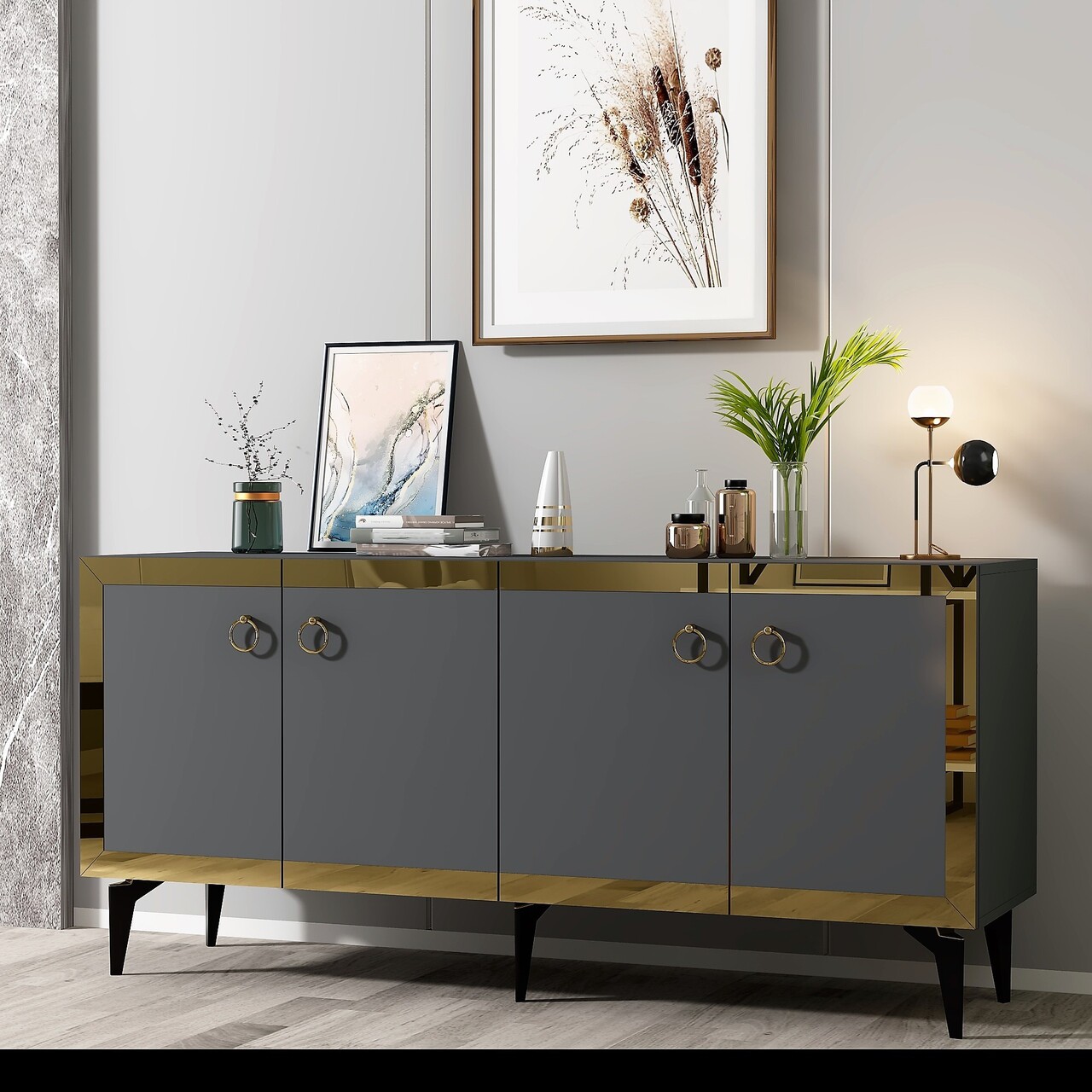 Consola, Olivia, Ponny, 150x40x79 cm, PAL , Antracit / Aur
