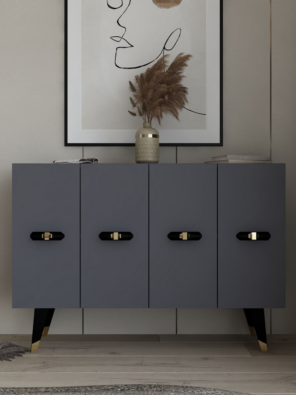 Consola, Olivia, Quart V, 120x80x29 cm, PAL , Aur/Antracit