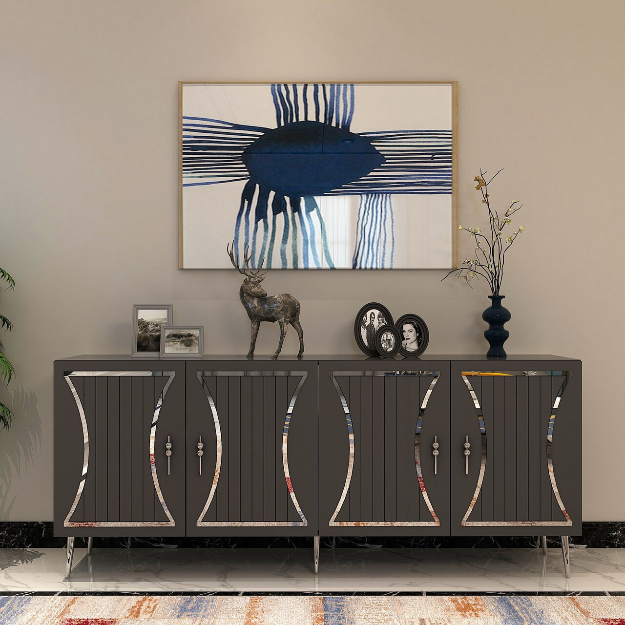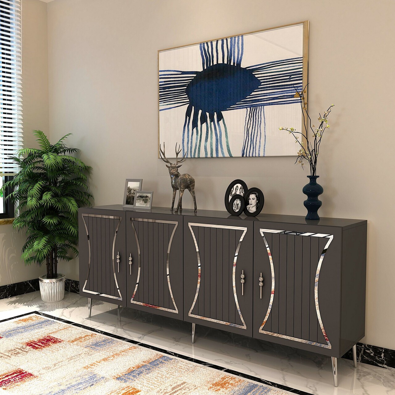 Consola, Olivia, Tean, 150x75x35 cm, PAL , Antracit / Argintiu