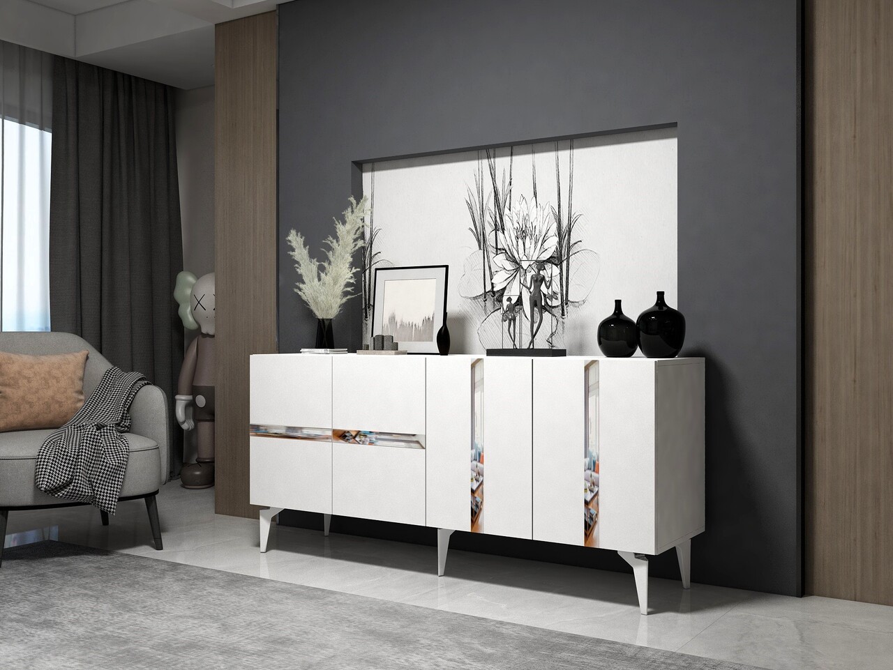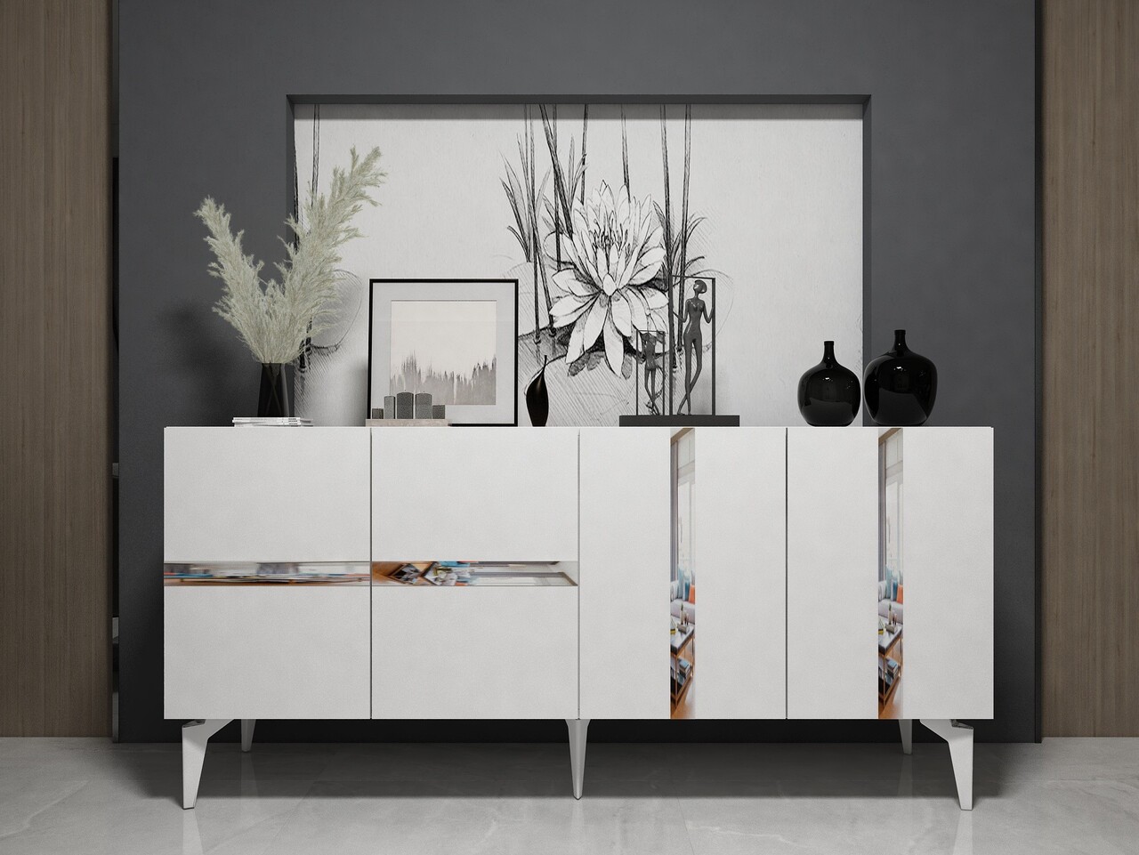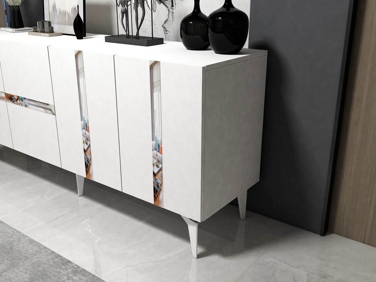 Consola, Olivia, Vania, 150x40x79 cm, PAL , Alb / Argintiu