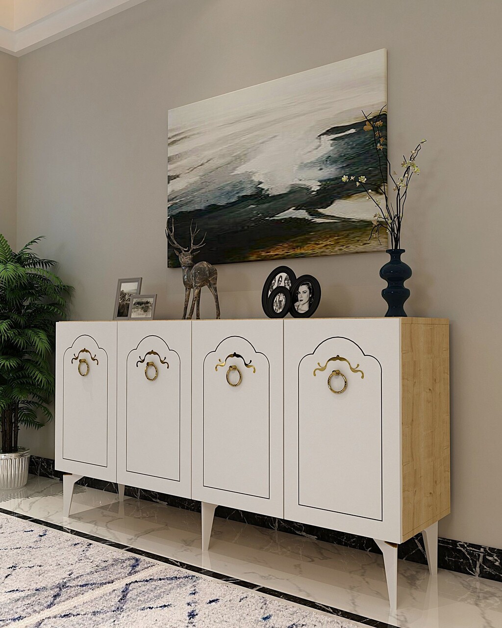 Consola, Olivia, Violet, 150x75x35 cm, PAL , Stejar Safir / Alb