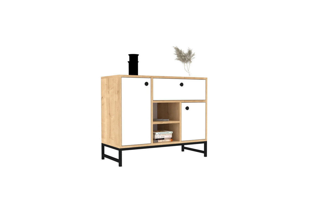 Consola, Puqa Design, İnci, 90x75x40 cm, PAL, Alb/Negru