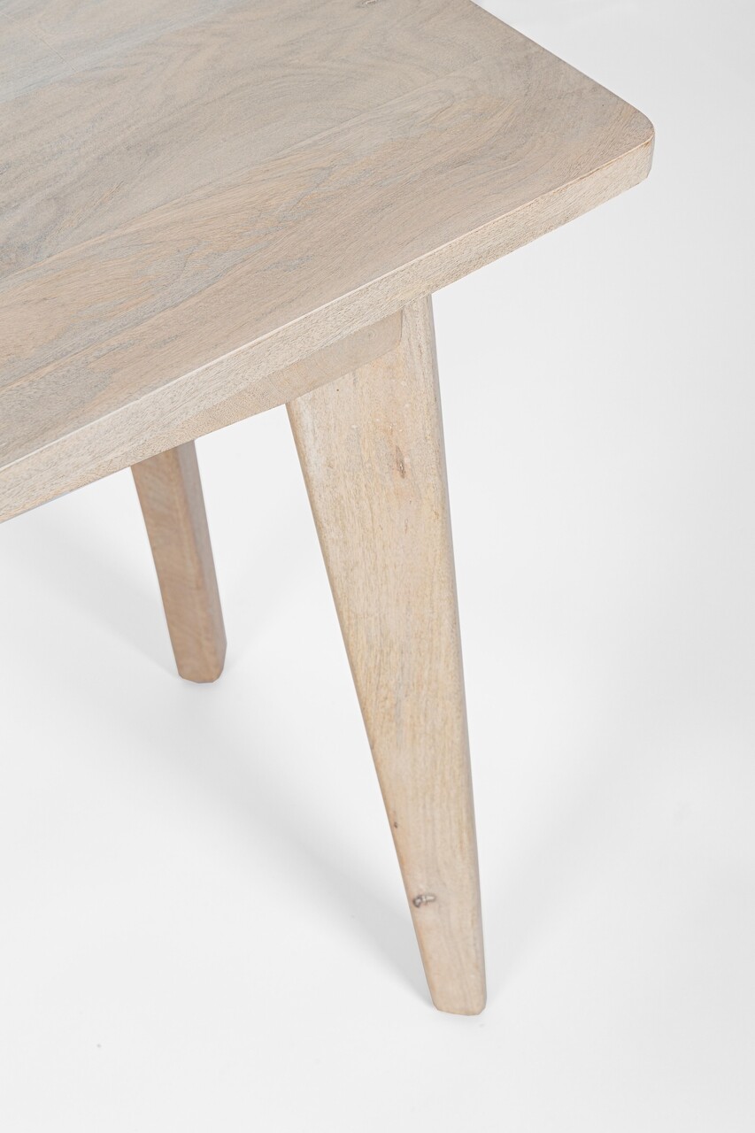 Lemn de mango, vopsea pe baza de nitroceluloza, finisaj alb cu aspect prespalat (wash color).