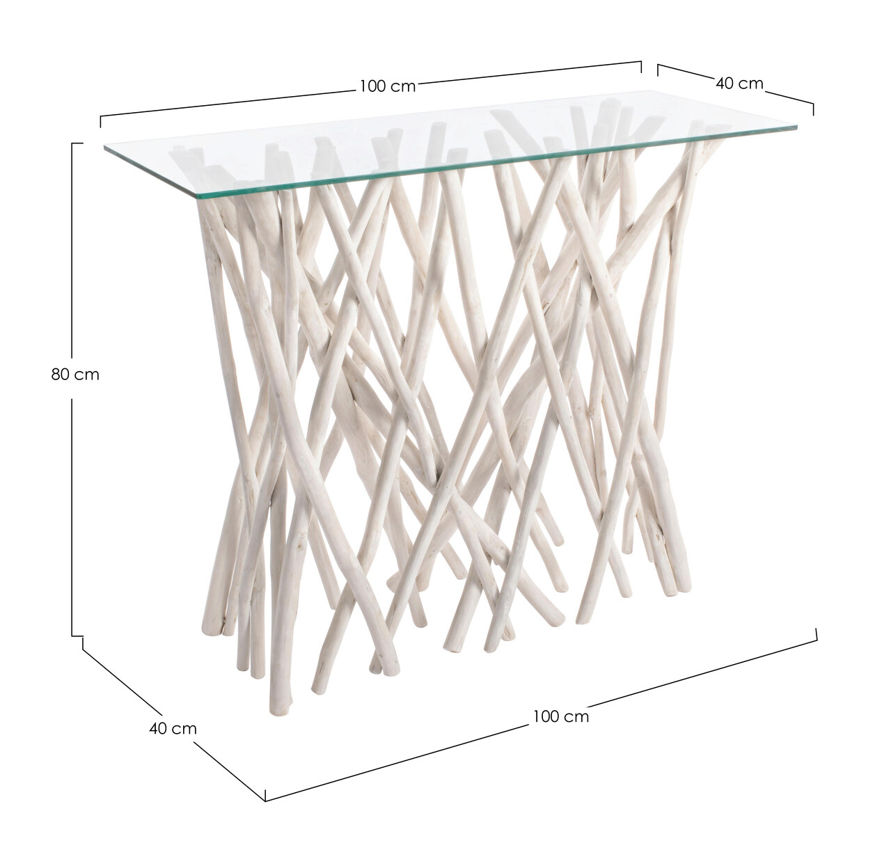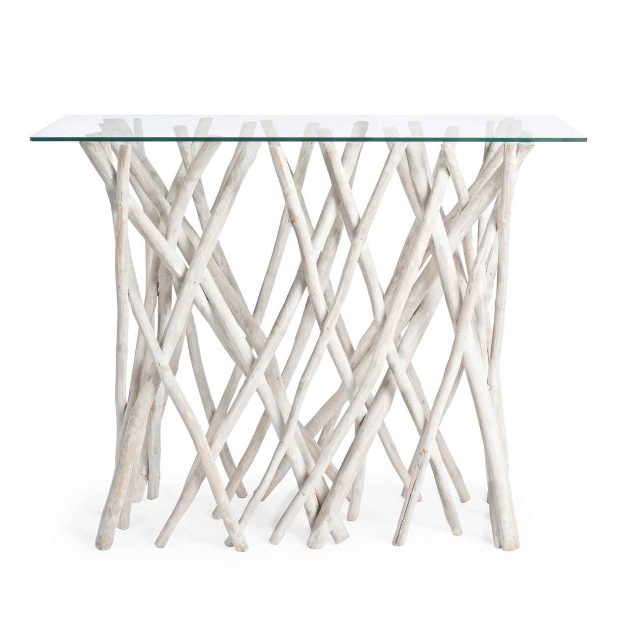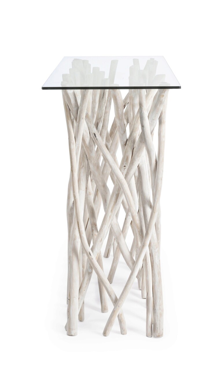 Consola Sahel, Bizzotto, 100 x 40 x 80 cm, ramuri de tec/sticla