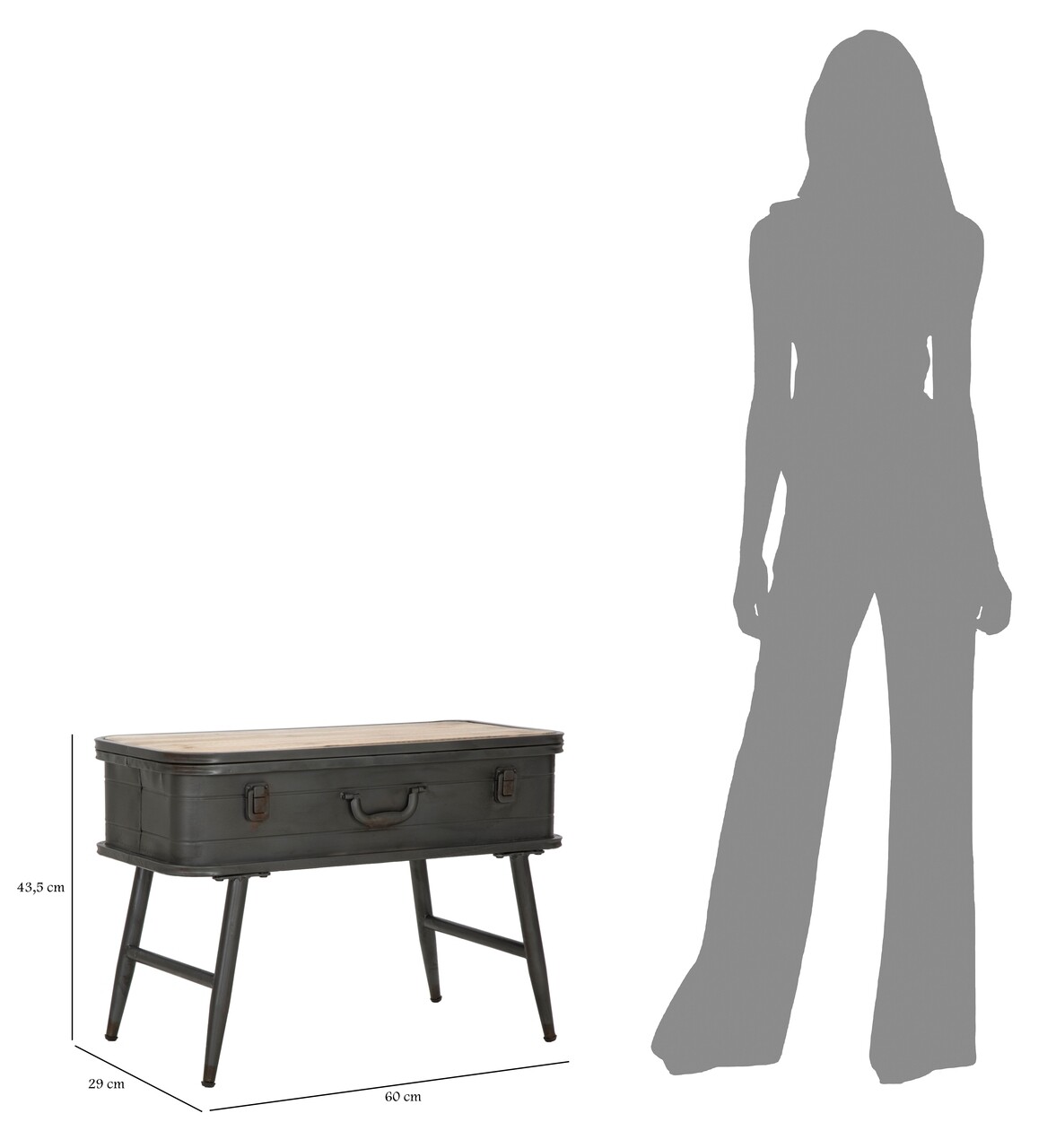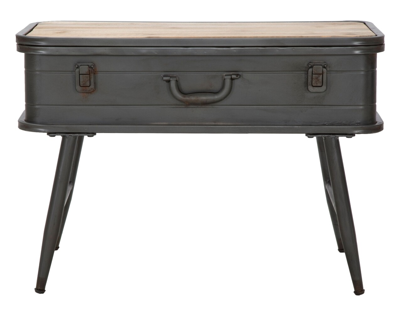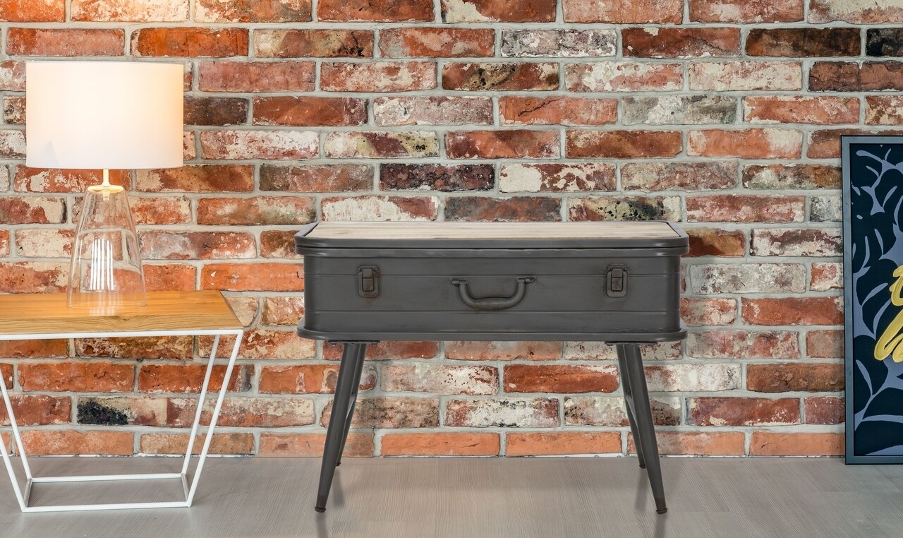 Consola Truck Industry, Mauro Ferretti, 60 x 29 x 43.5 cm, lemn de brad/fier, gri inchis/natural