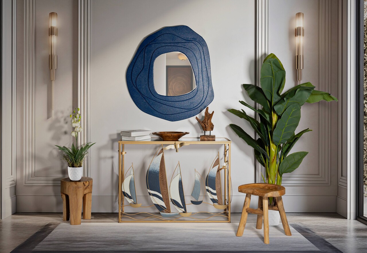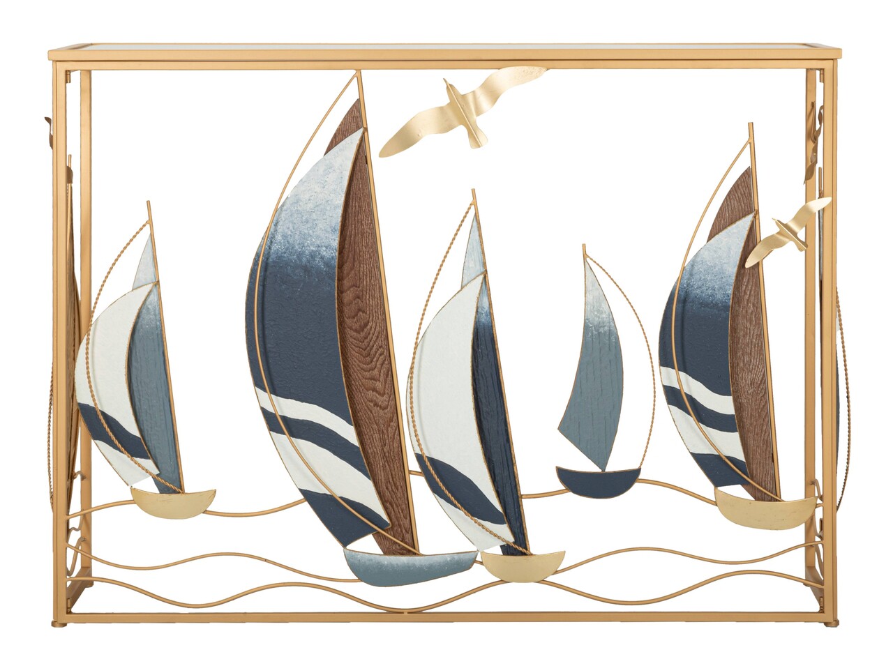 Consola Vele, Mauro Ferretti, 108x37x80 cm, fier/MDF/oglinda, multicolor