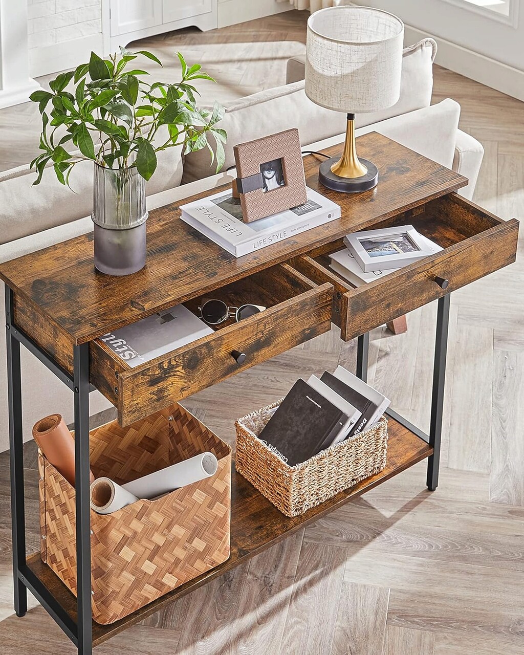 Consola Vincyer, Vasagle, 100 x 30 x 80 cm, PAL/otel, maro rustic