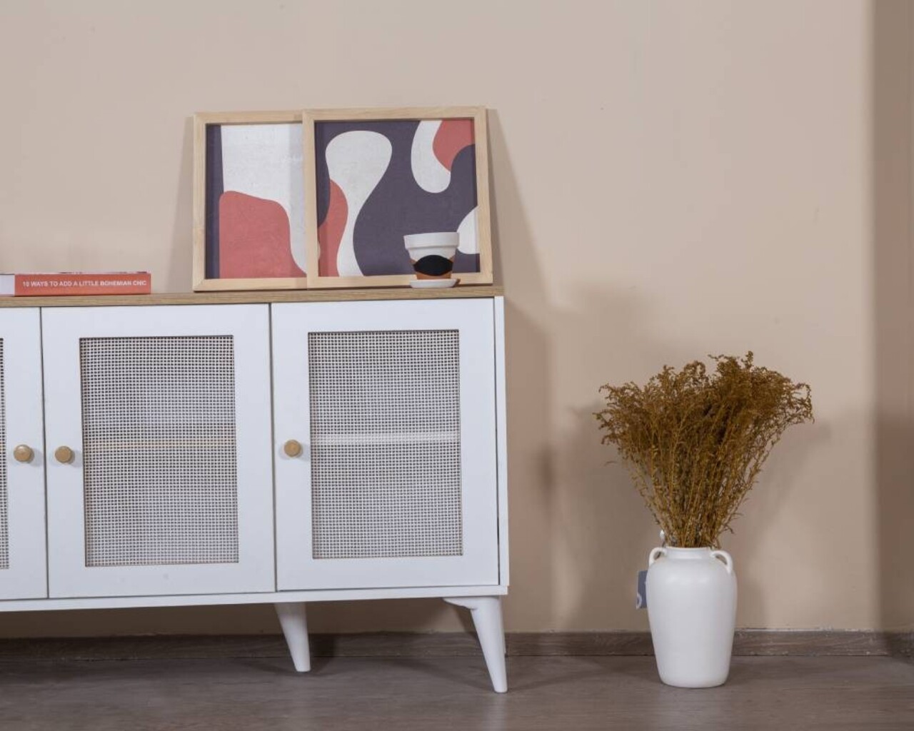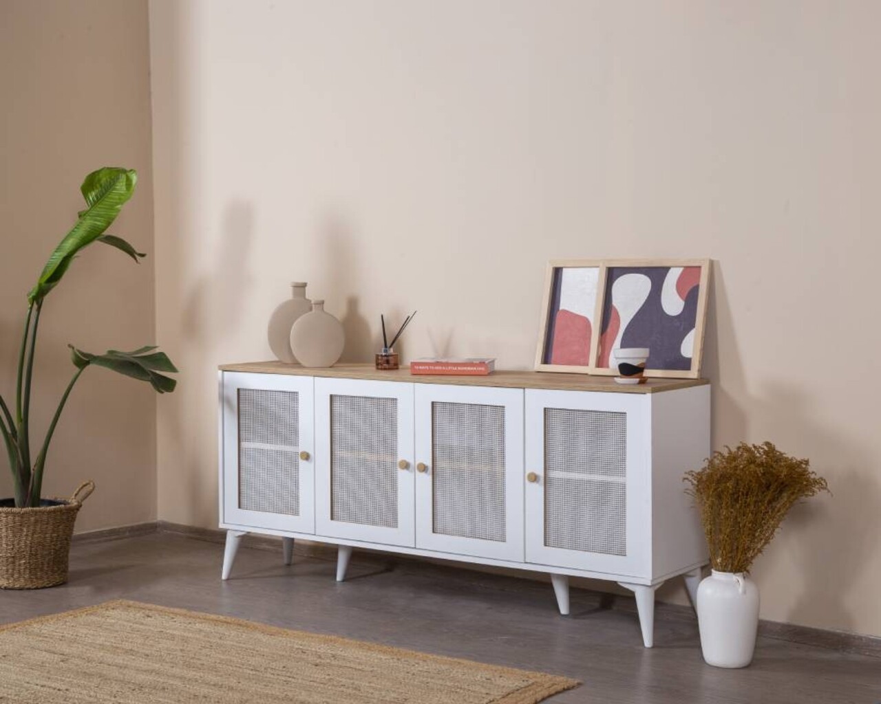 Consola, Wolina, Calvin, 80x180x41 cm, MDF , Alb / Stejar