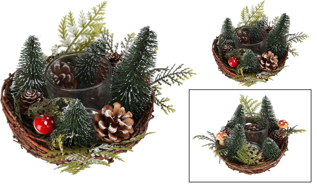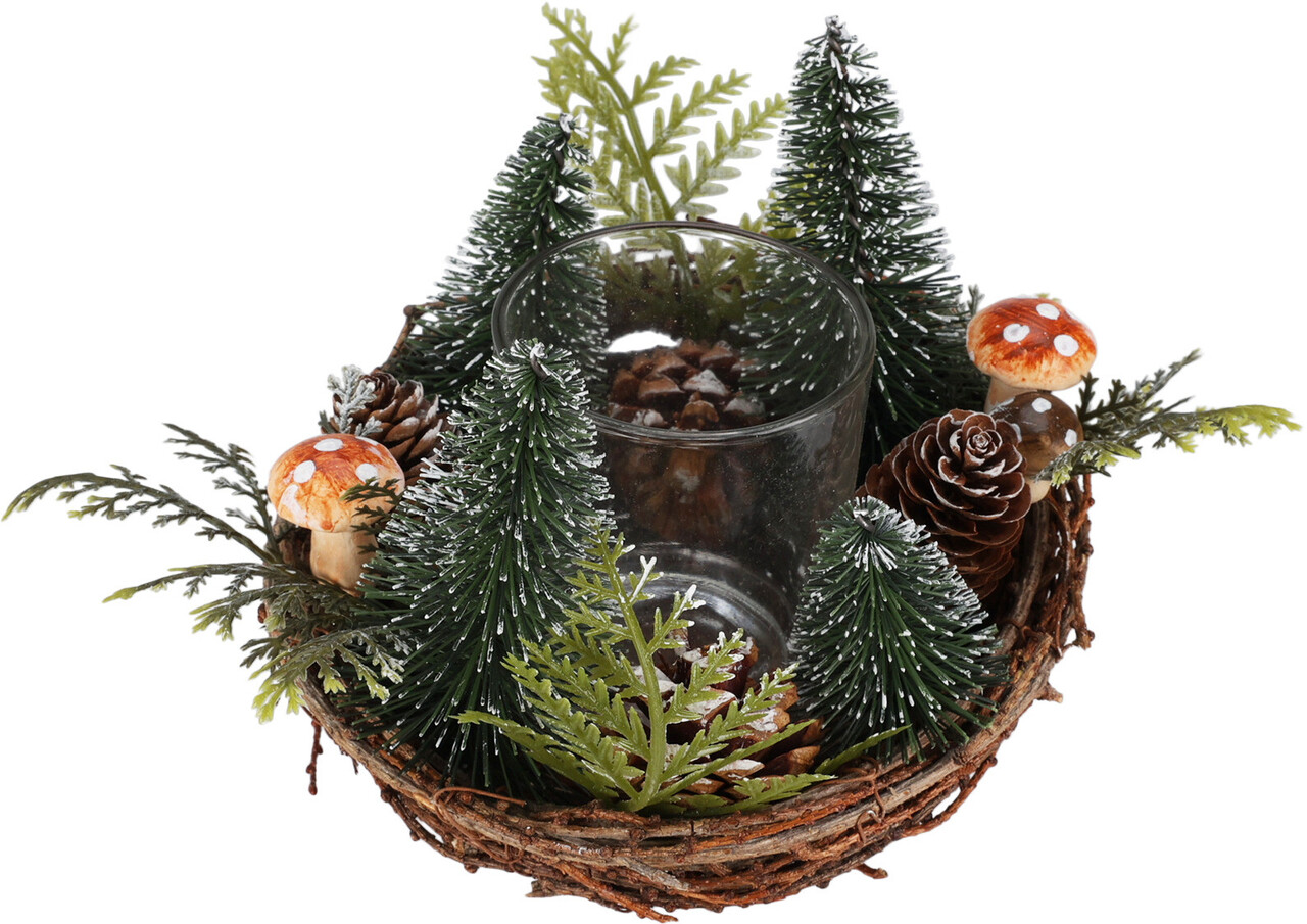 Coronita de masa cu suport lumanare Xmas Ambiance v2, 15x15x15 cm, salcie/ratan, verde