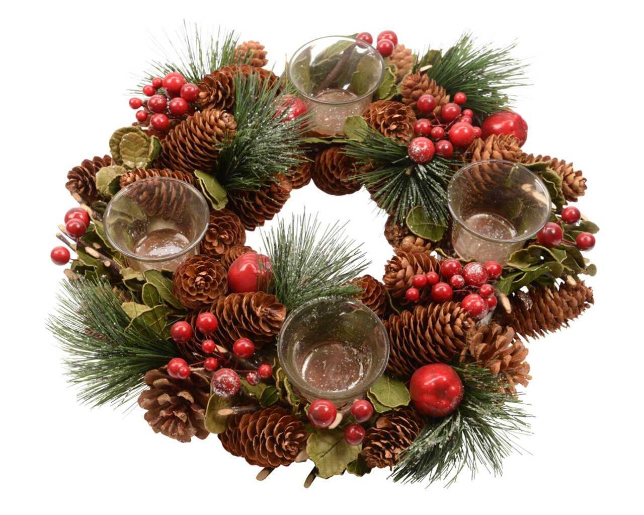 Coronita decorativa cu 4 suporturi pentru lumanari Berry, Decoris, multicolor