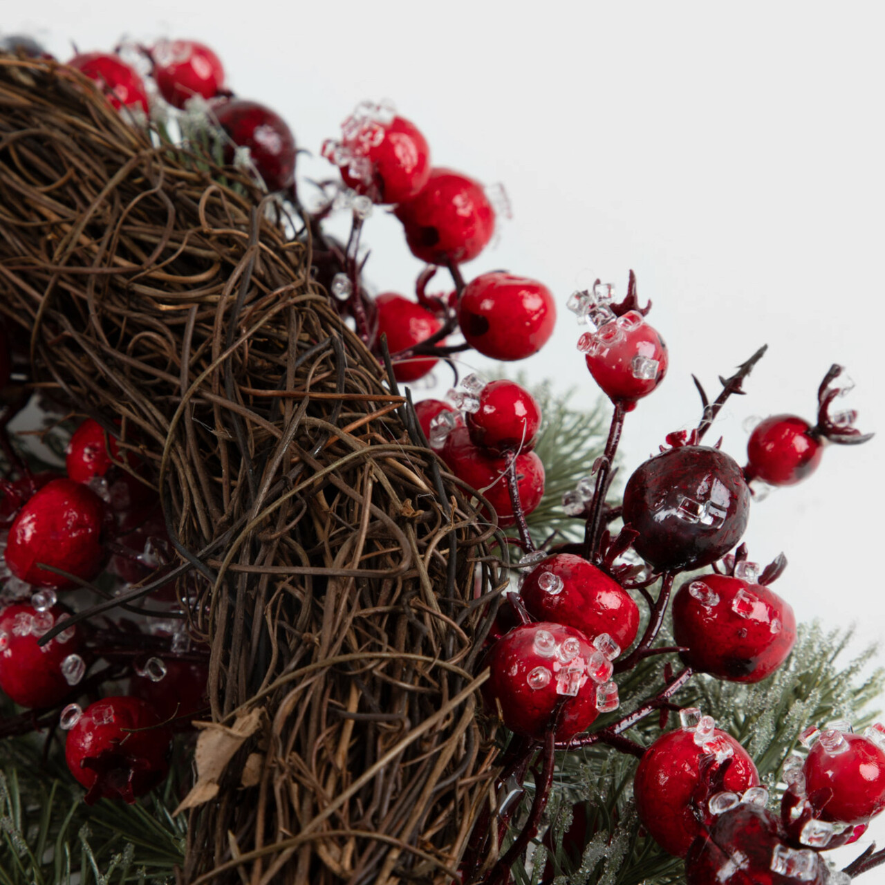 Realizata din materiale sintetice de inalta calitate, coronita FARILA reproduce fidel aspectul crengutelor si ornamentelor naturale. Manopera durabila si detaliile meticuloase o fac rezistenta la trecerea timpului, pastrandu-si aspectul frumos pentru multi ani.