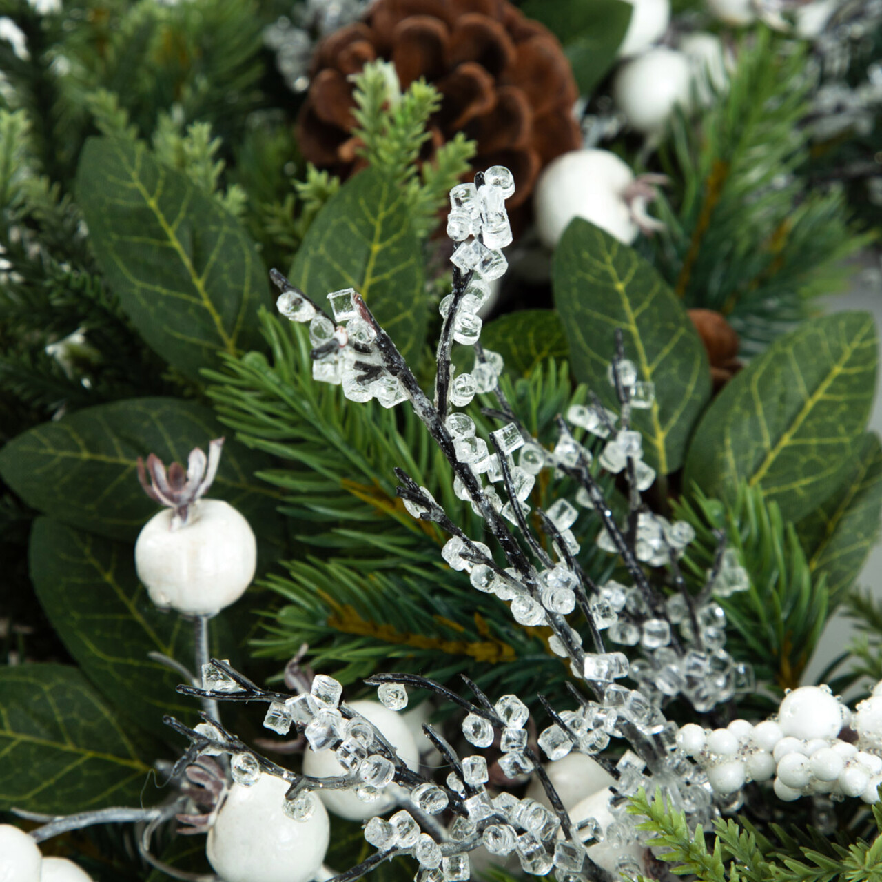 Coronita decorativa este realizata din materiale sintetice de inalta calitate care reproduc fidel aspectul crengutelor si ornamentelor naturale. Detaliile rafinate si manopera solida garanteaza durabilitatea.