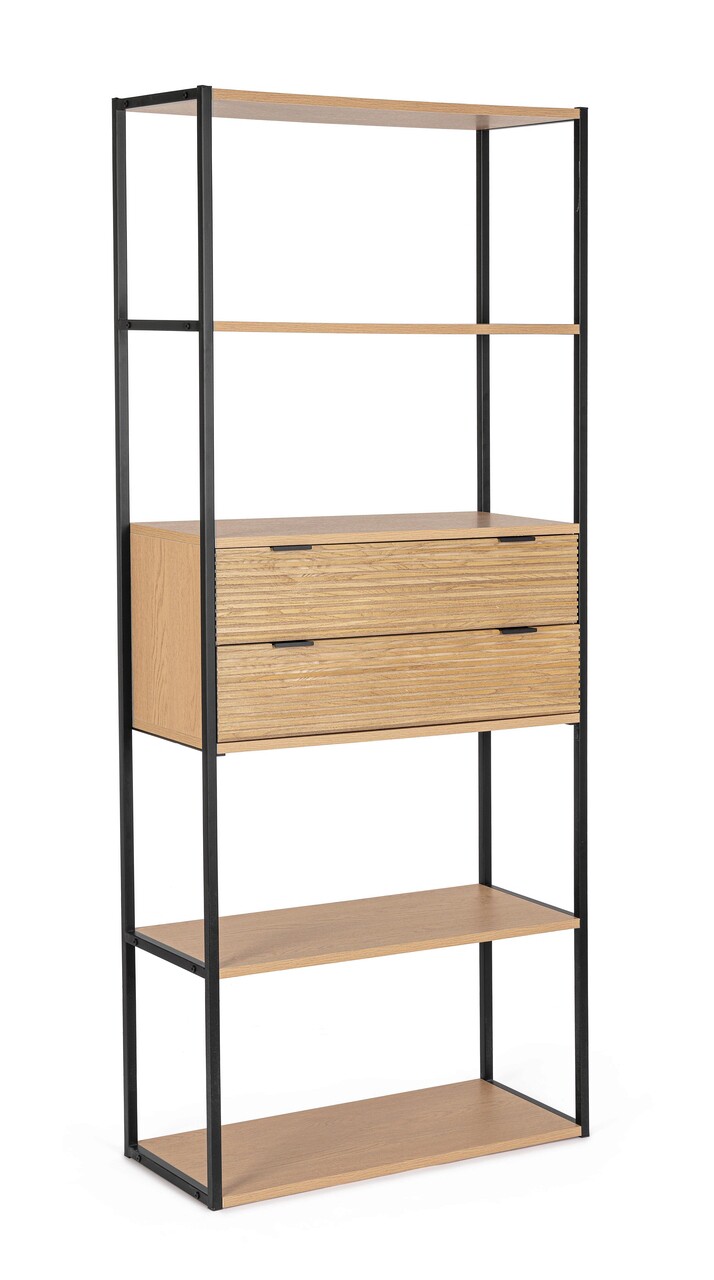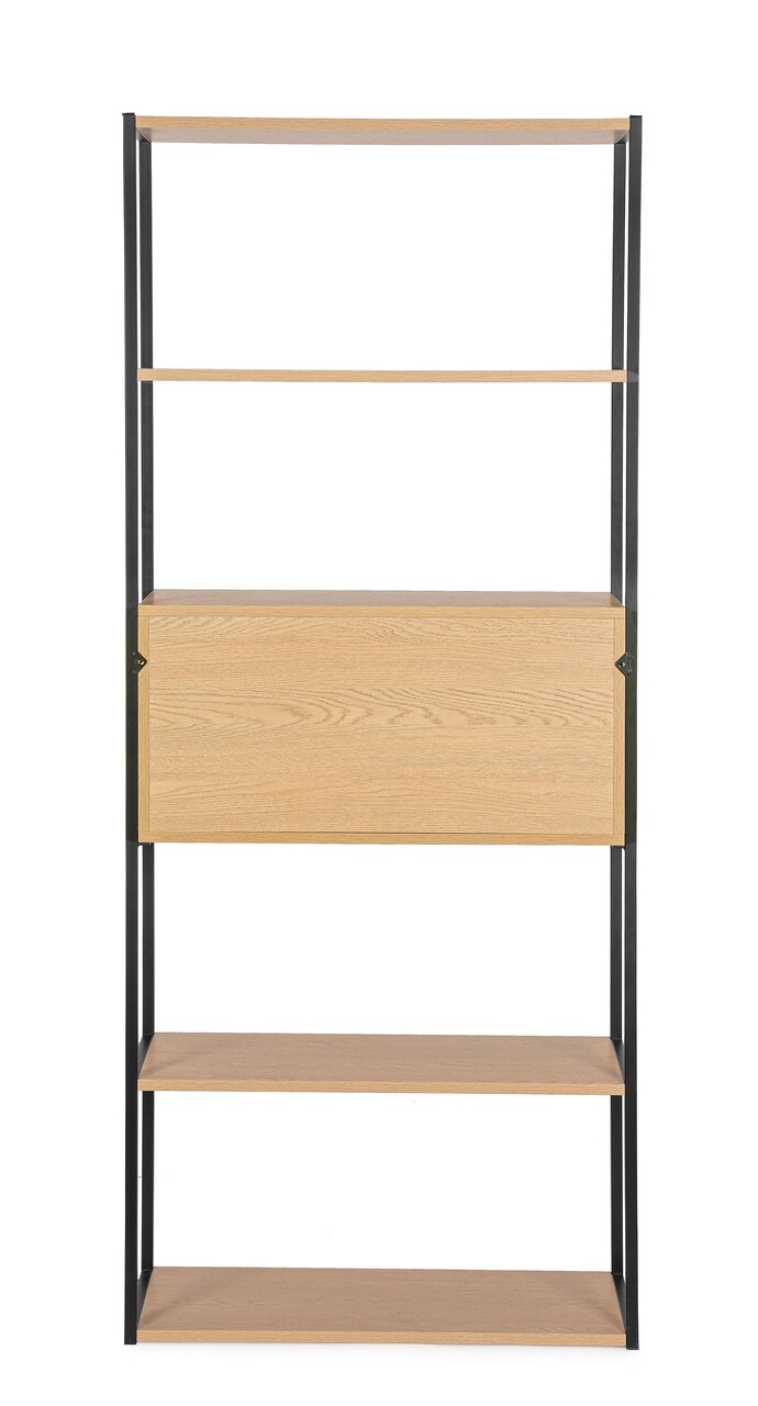 Corp biblioteca Allycia, Bizzotto, 84.5 x 35 x 200 cm, lemn de frasin/MDF, negru/natural