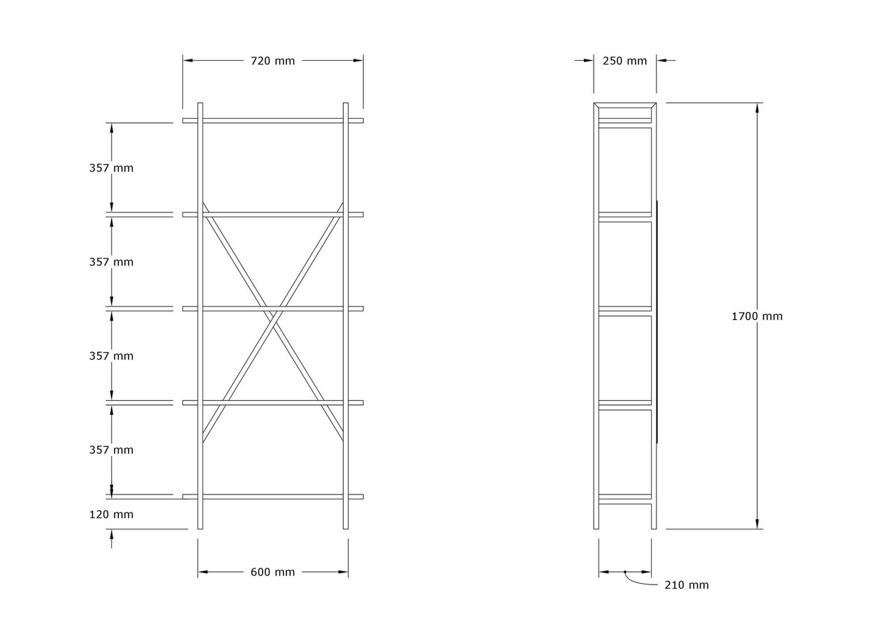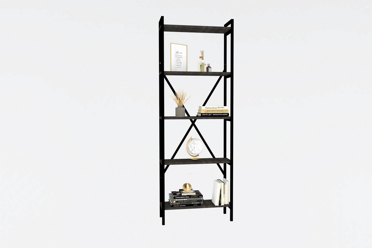 Corp biblioteca, Asse Home, Kinder, 72x170x25 cm, PAL, Nuc / Negru