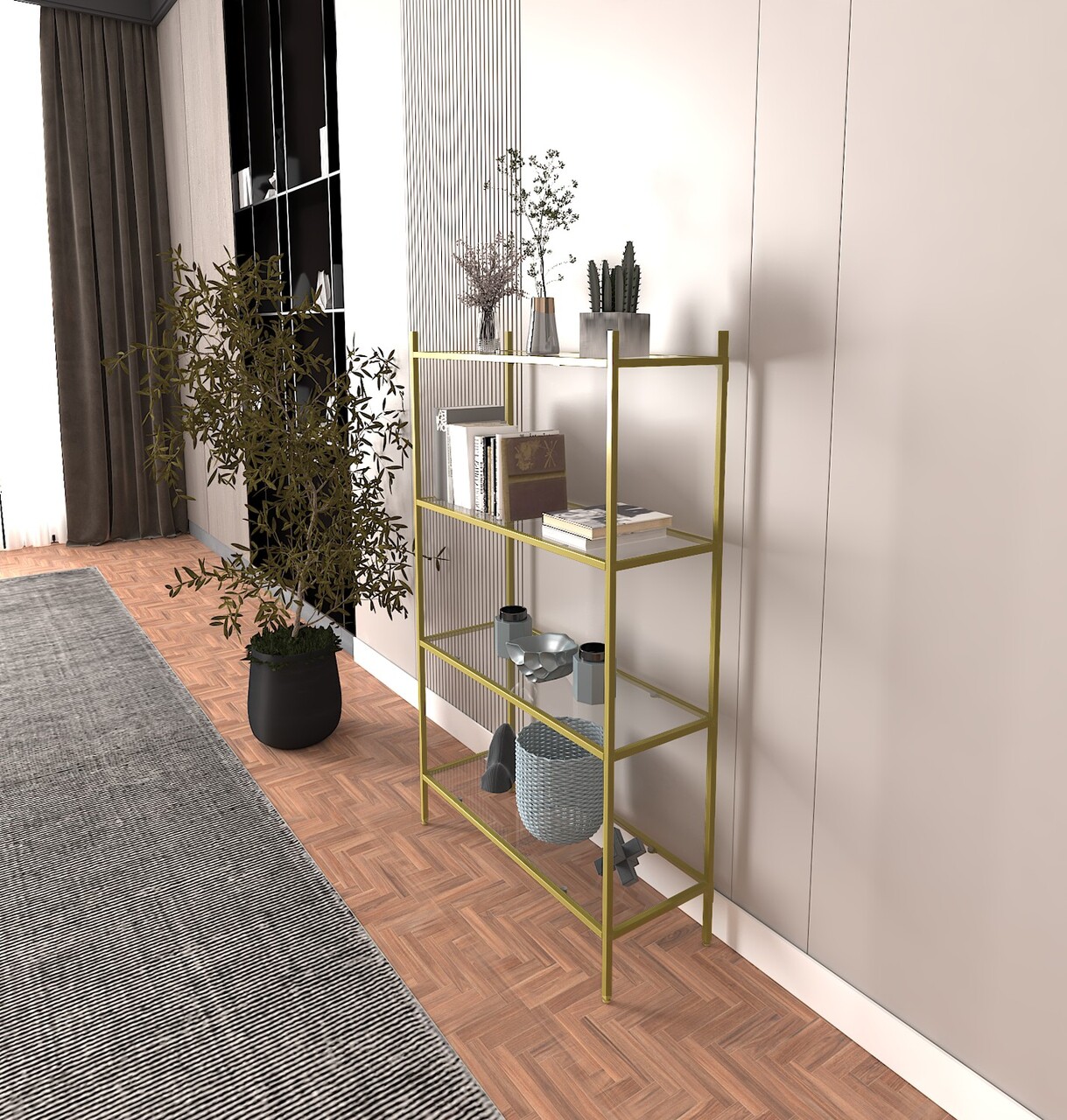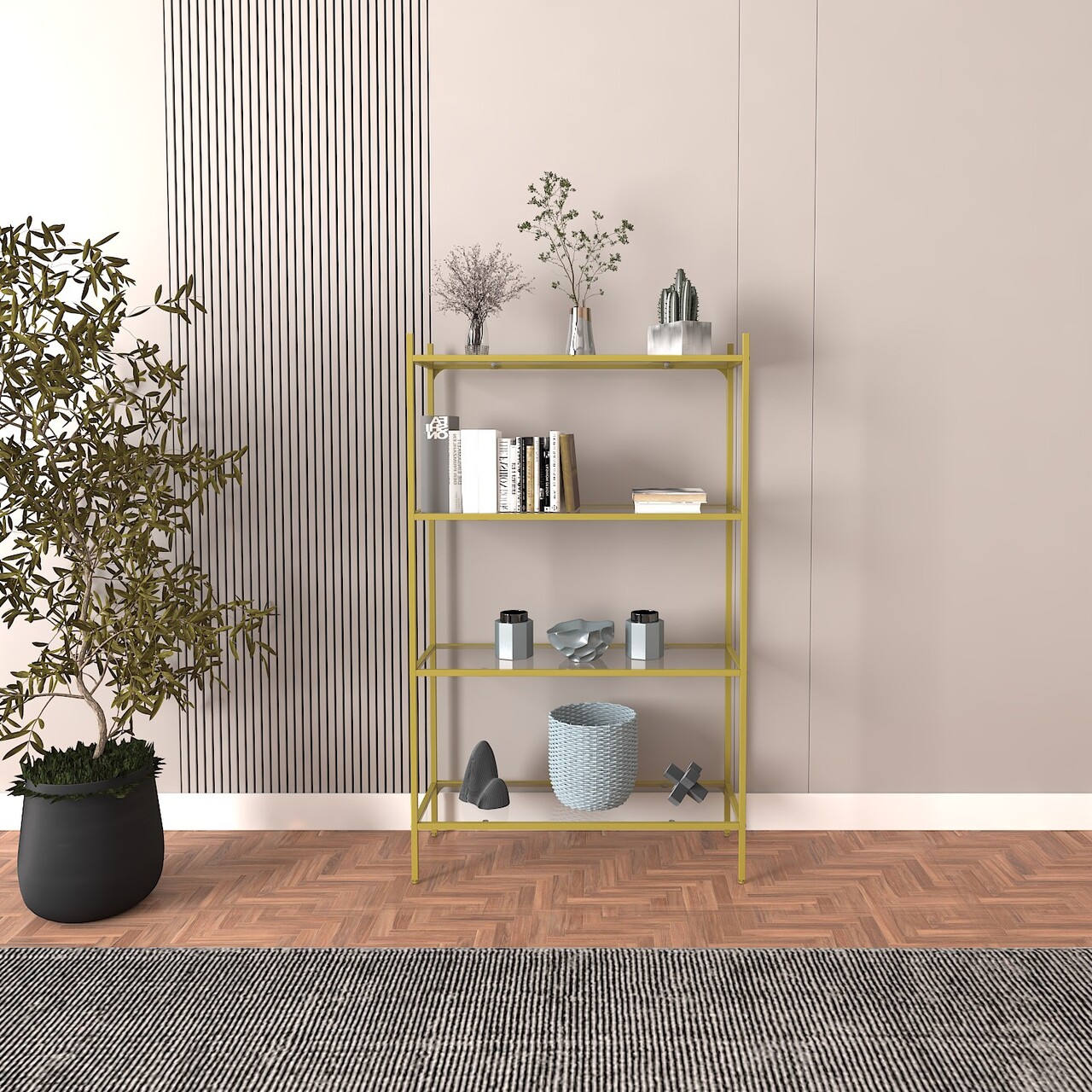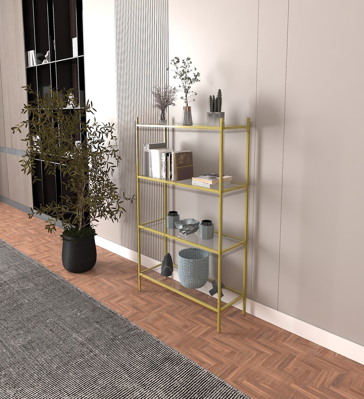 Corp biblioteca, Caliente, Marta, 80x126x30 cm, Sticla temperata, Auriu