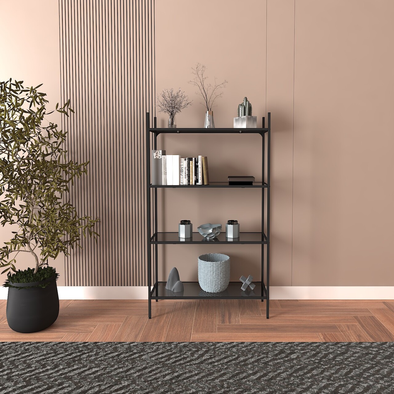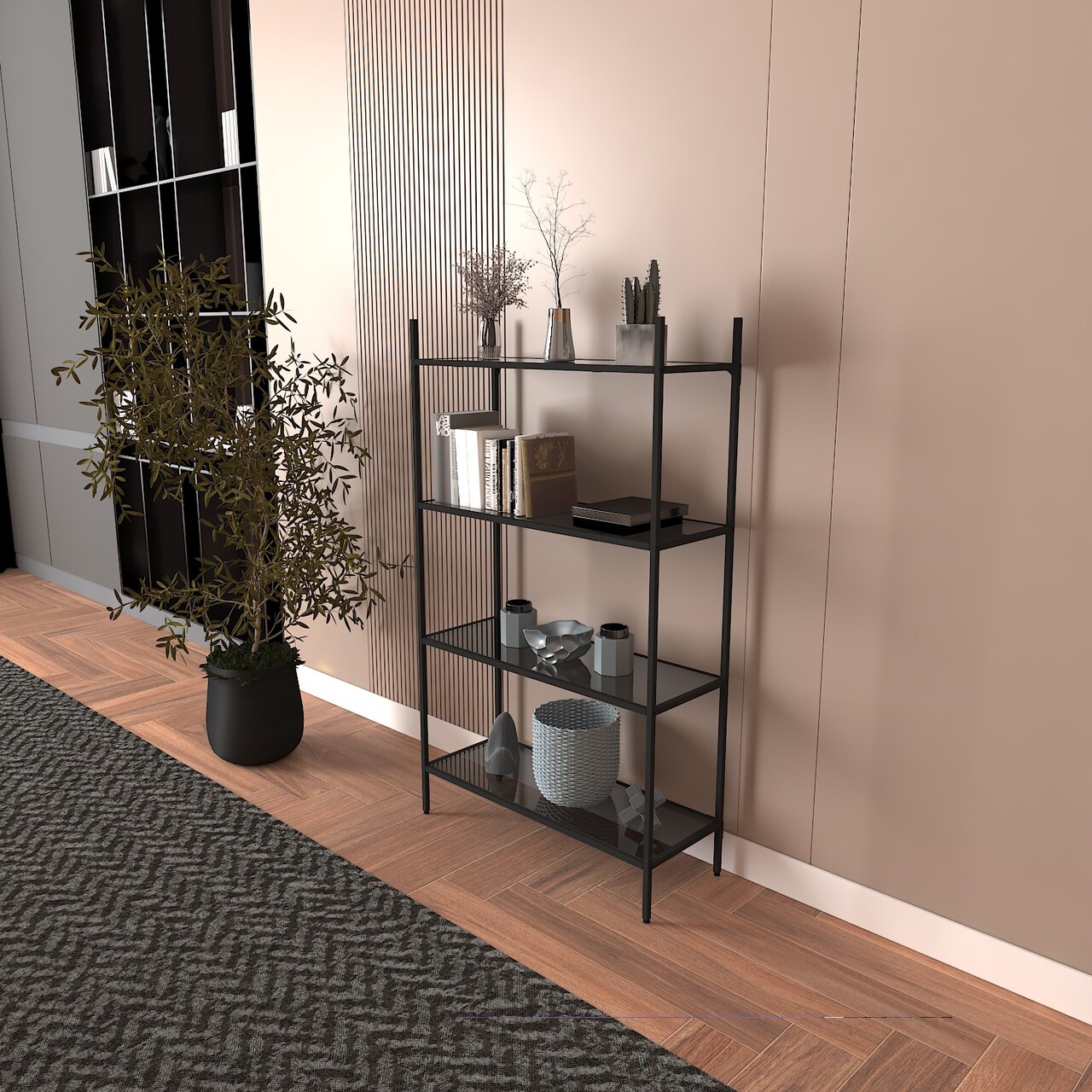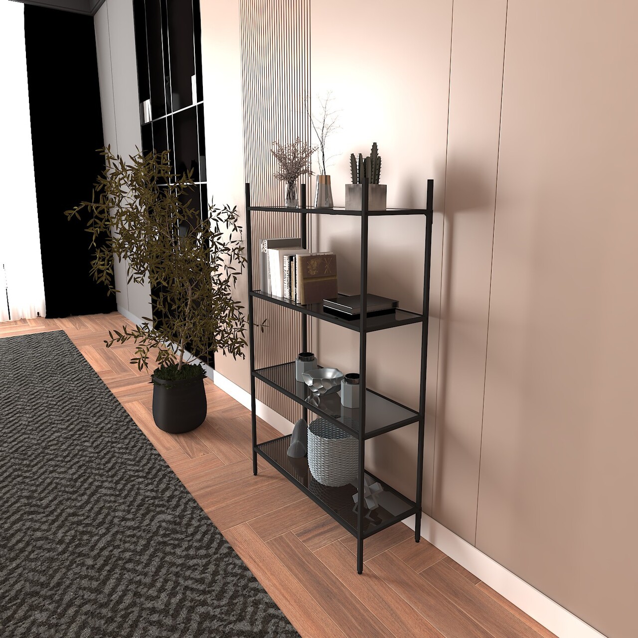 Corp biblioteca, Caliente, Marta, 80x126x30 cm, Sticla temperata, Negru