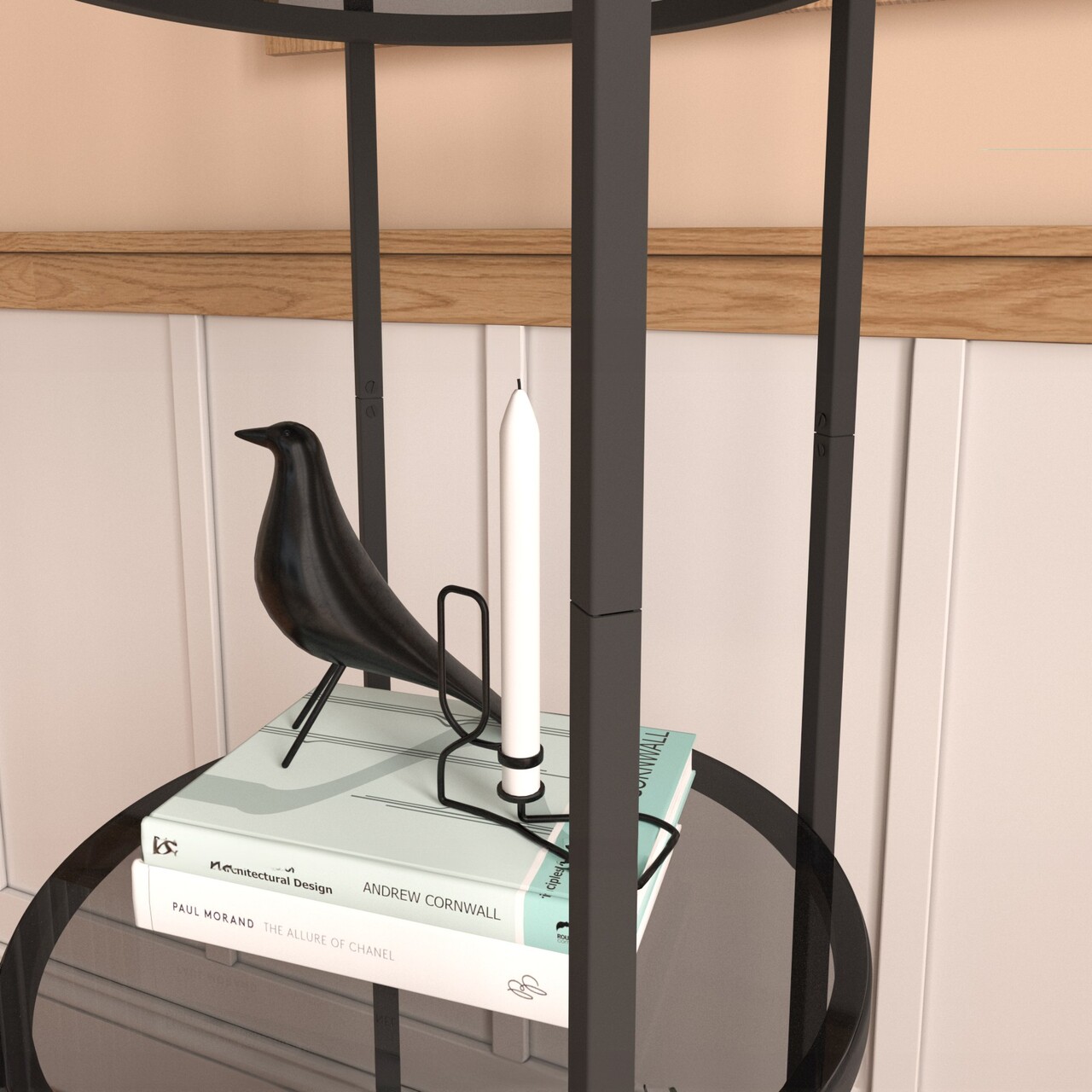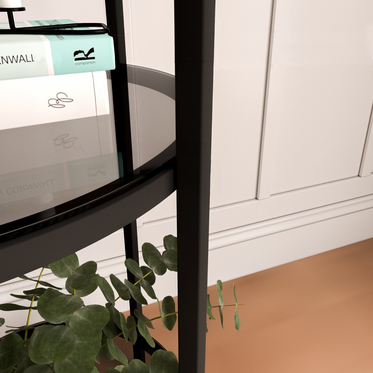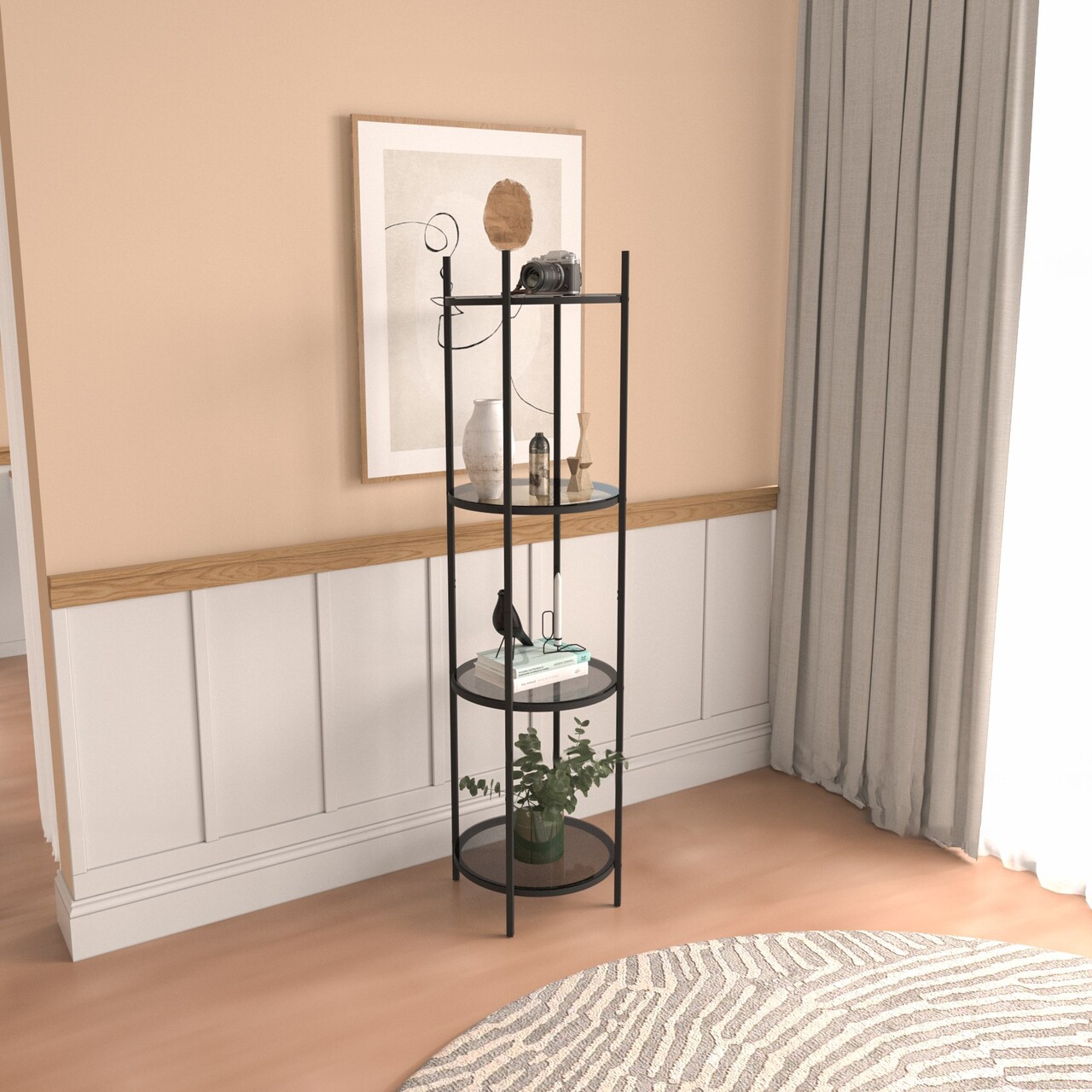 Corp biblioteca, Caliente, Vogue, 42x150x42 cm, Sticla temperata, Negru